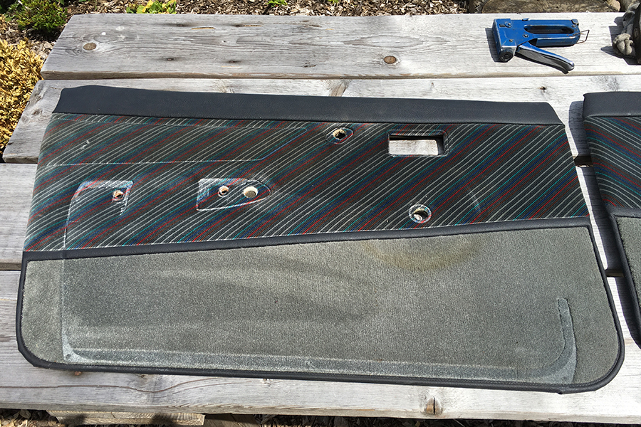 ..wurde jedoch wie alle anderen Verkleidungen schön sauber. An allen 4 Verkleidungen hat man auch das Alter gemerkt. Deswegen habe ich die Bezüge auf der Rückseite teilweise neu verklebt bzw. neu getackert.
