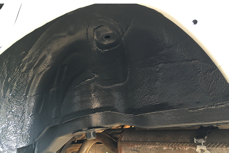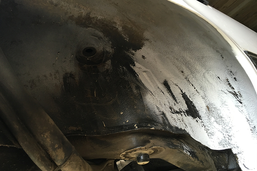 Ziel der Behandlung sollten zuerst die hinteren Radkästen sein, welche ich grob angeschliffen und gründlich saubergemacht habe. Zuerst habe ich noch die umgelegte Kante der gezogenen Radläufe mit Karosseriedichtmasse versiegelt und anschließend...