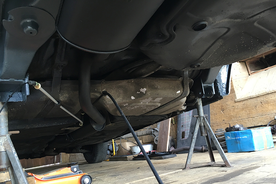 Heute habe ich ein bisschen weitergemacht. Ohne Fluchen ging es natürlich auch wieder nicht, da neue Auspuffgummis und wenig Platz, um an die Schrauben vom Kat und Hosenrohr zu kommen, eine kleine Herausforderung sind.