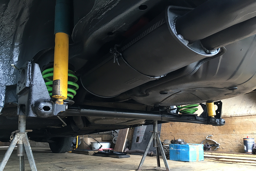 Er sitzt aber gut und die passende Schelle für den 16V ESD auch. Das neue Handbremsseil sitzt ebenfalls schon an Ort und Stelle. Nun kann es mit der Hinterachse weitergehen. -