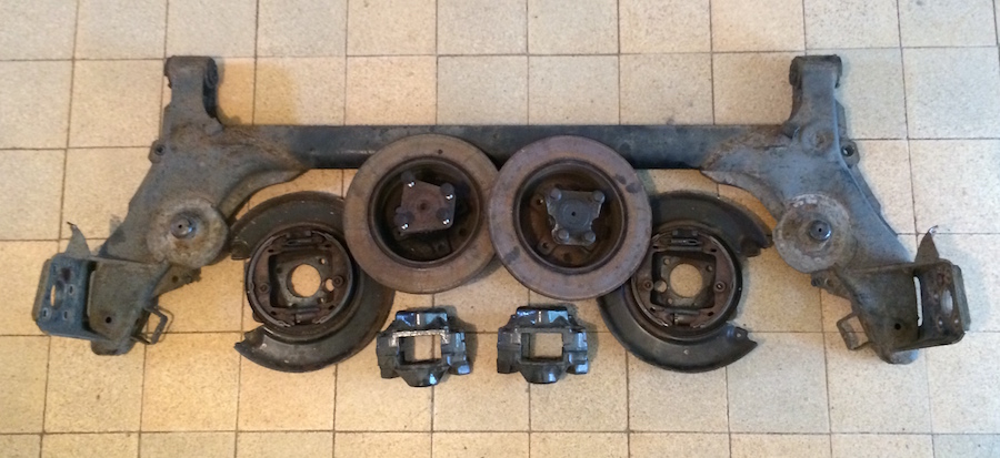 Edit: Die zerlegte Kadett 16V Achse aus dem 1991er mit ABS. Leider sind die einzelnen ABS-Sensoren nicht mit abgebildet.