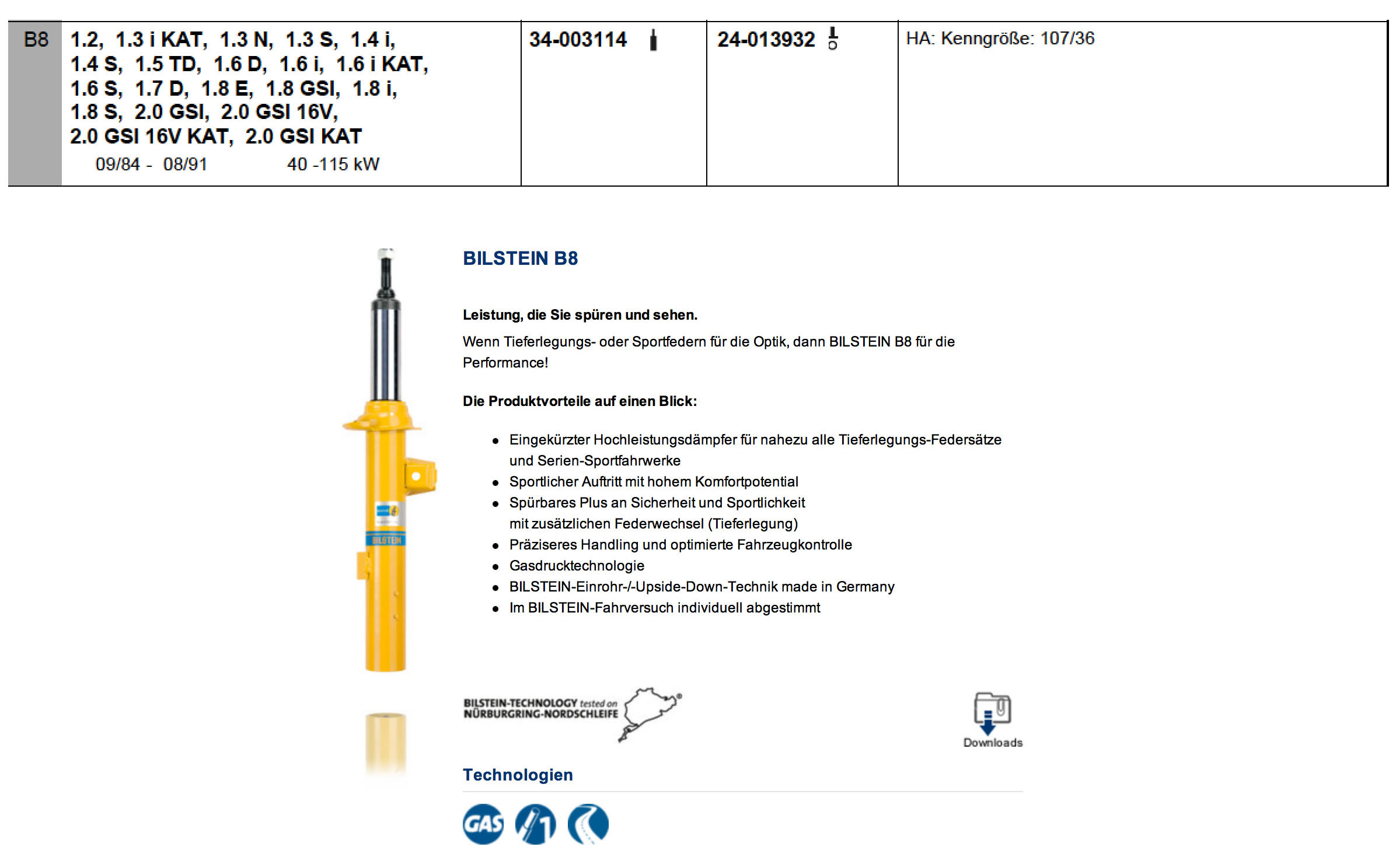 Da ich jetzt doch ein bisschen verunsichert war, ob ich wirklich das bestellt habe was ich wollte, habe ich mich nochmal belesen. Die Bestellnummern für die Bilstein B8 Stoßdämpfer für den Kadett E-CC inkl. Kadett GSi 16V seht ihr in der Anlage und auch die dazugehörige Beschreibung. Die nette Dame am Telefon bei Bilstein hatte mir auch vor Weihnachten bestätigt, dass die Bilstein B8 Dämpfer B6 Dämpfer mit 50mm Rebound sind.