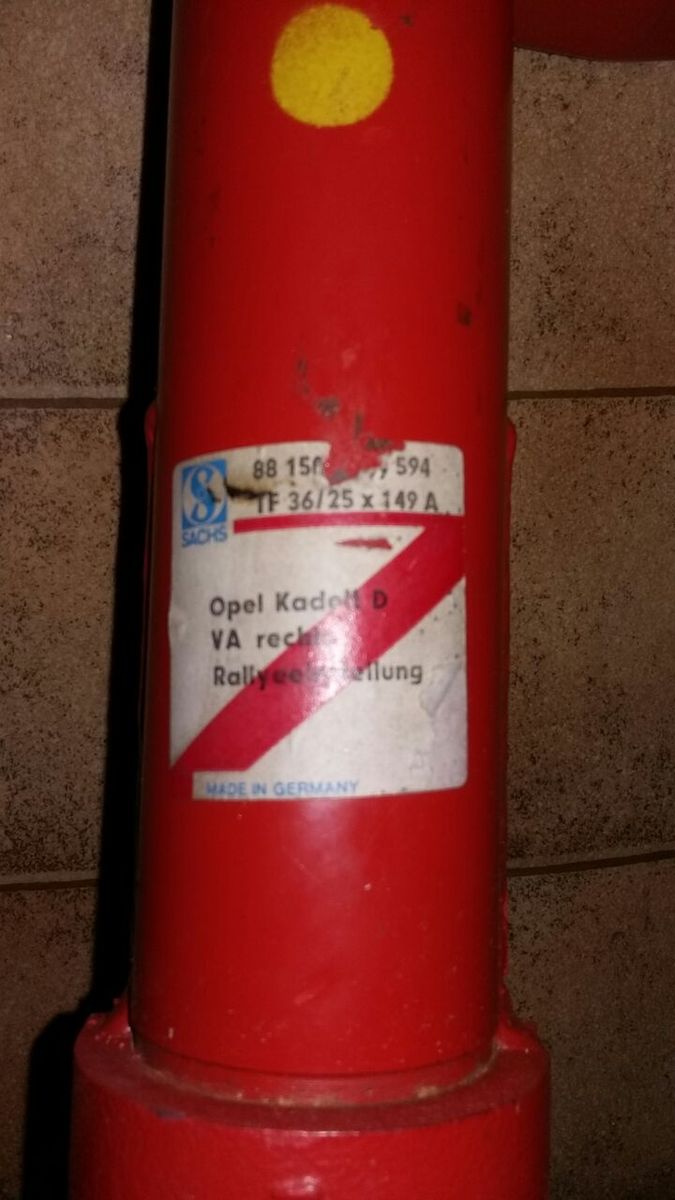 Die einzigen Gewindefahrwerke für den Kadett D, die es ab Anfang der 80´er Jahre ausschließlich vom Hersteller Fichtel & Sachs für die Vorderachse zu kaufen gab, nur leider ohne eine entsprechende Straßenzulassung; bin ich damals selbst gefahren und habe das Letzte dieser mir bekannten Fahrwerke vor ca. 6 Jahren verkauft. Hatte damals zu dieser Zeit neu ein kleines Vermögen gekostet.