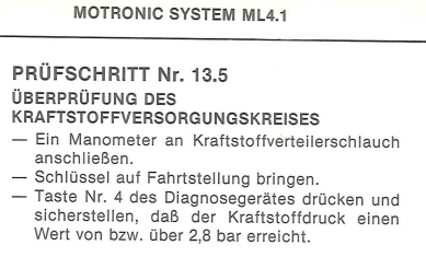 Da Jack.Slater jedoch in der Zulaufleitung vor dem Kraftstoffdruckregelventil gemessen hat, würde ich das Ventil zwar nicht ausschließen wollen, aber auch nicht als erstes darauf tippen. Damit der Kraftstoffdruck sich nahezu halbiert, müsste schon die Feder im Kraftstoffregler gebrochen oder die Membrane defekt sein. Letzteres schließe ich jedoch aus, da ja keine Leckage am Unterdruckschlauchanschluss gemeldet wurde. Den U-Schlauch abzuziehen und dies zu prüfen ist schnell erledigt, dafür muss noch nicht mal die Pumpe laufen, um eine Undichtigkeit festzustellen; Pumpe mit Schlüsseldreh antakten, Zündung aus und Schlauch abziehen.