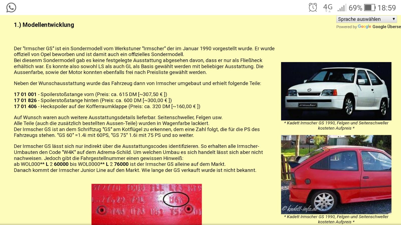 Der Wagen ist aus erster Hand und hat als Extra die Irmscher- Verspoilerung auch als Extra bei Neubestellung ab Werk bekommen.