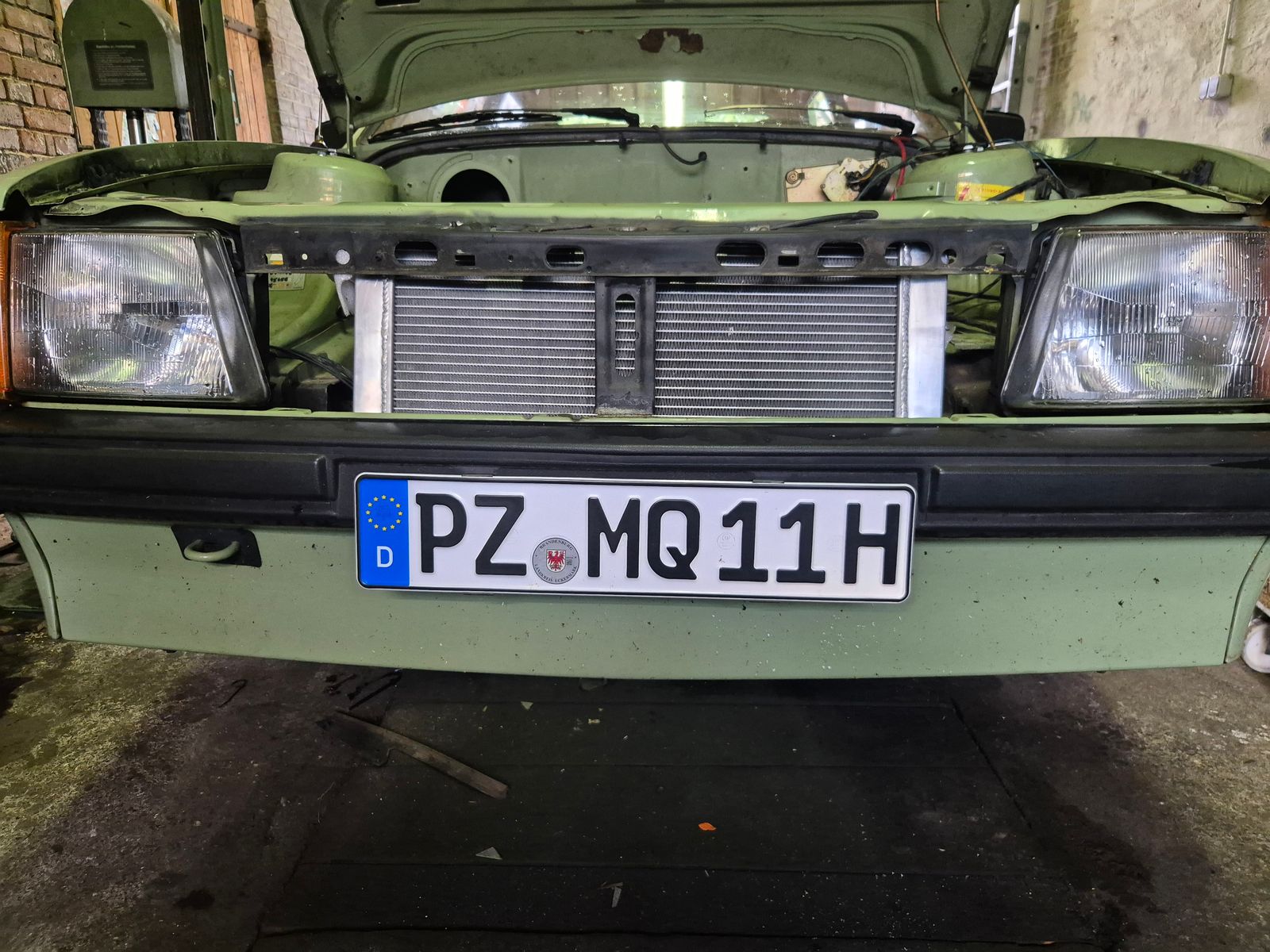 Die Woche haben wir schon mal den Wasserkühler und LLK positioniert. Halter werd ich die Tage bauen und montieren/verschweißen.