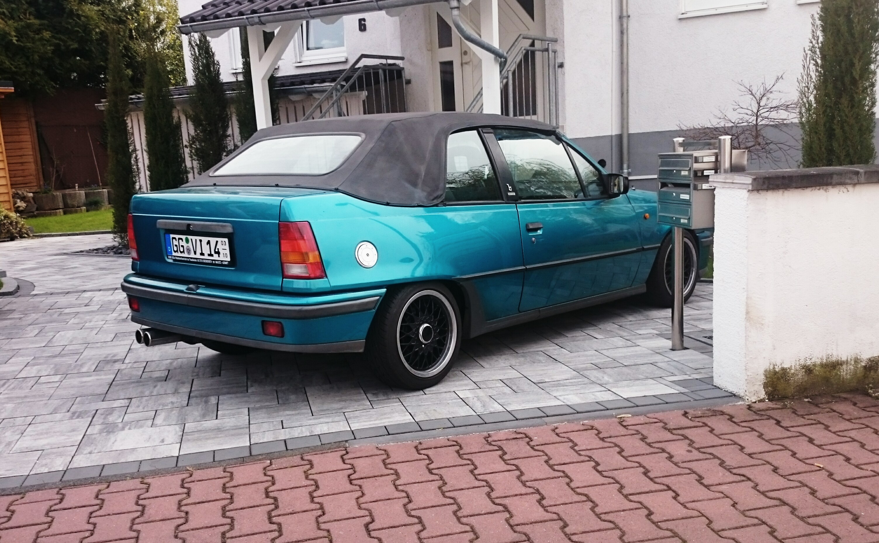 so heute waren wir nicht untätig und haben mein Cabrio endlich wieder tiefer gelegt und hinten sturzplatten verbaut