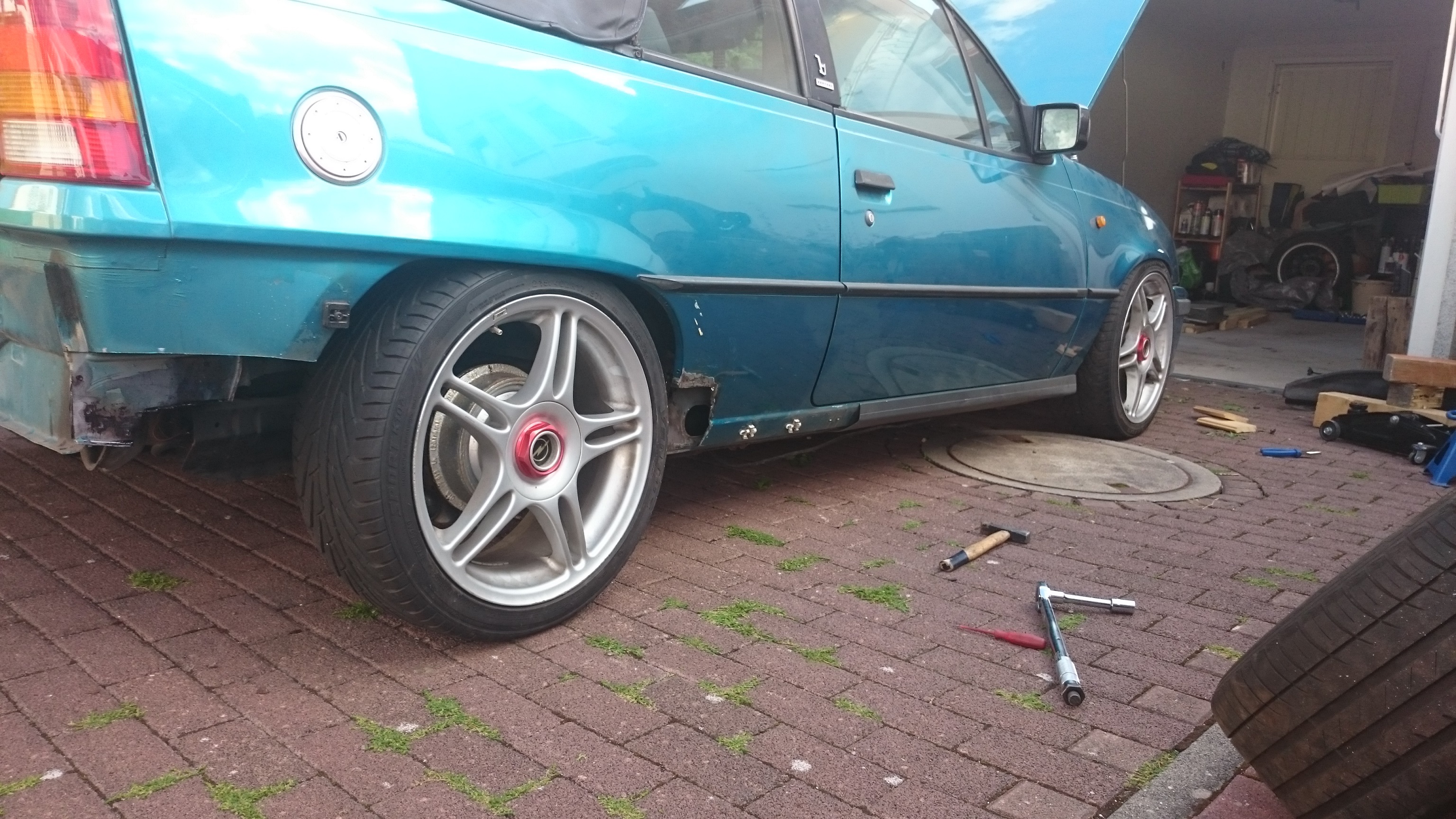 Gerade mache ich die Endspitze hinten rechts und die Schwellerendspitze.Dann habe ich mal 17er probe gesteckt, ist schon geil aber vielleicht doch einen tik zu viel.
