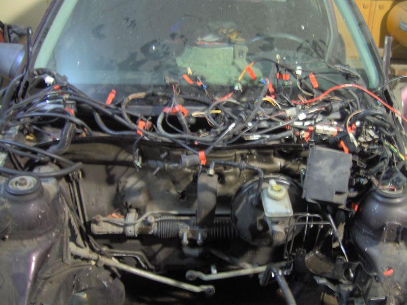 Naja, erstens tu ich mir leichter wenn ich die Maschine anpass, weill ich noch einiges verschweissen muss, wie z.B.: die komplette Front, und zweitens, ich übernehm zwar den kompletten Kabelbaum, aber mein Elektriker und ich ham vor den Salat völlig auseinander zu nehmen, und neu zu stricken, ich will so wenig wie möglich an Kabeln ham im Motorraum, und wenn ich mir eh die Arbeit mach, dann will ich´s richtig gut machen.