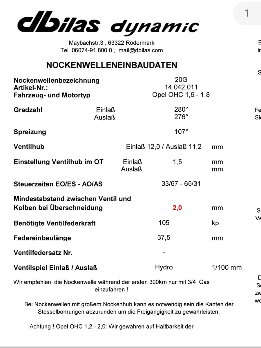Nabend, hat jemand zufällig paar Daten für diese C20NE Nockenwelle?