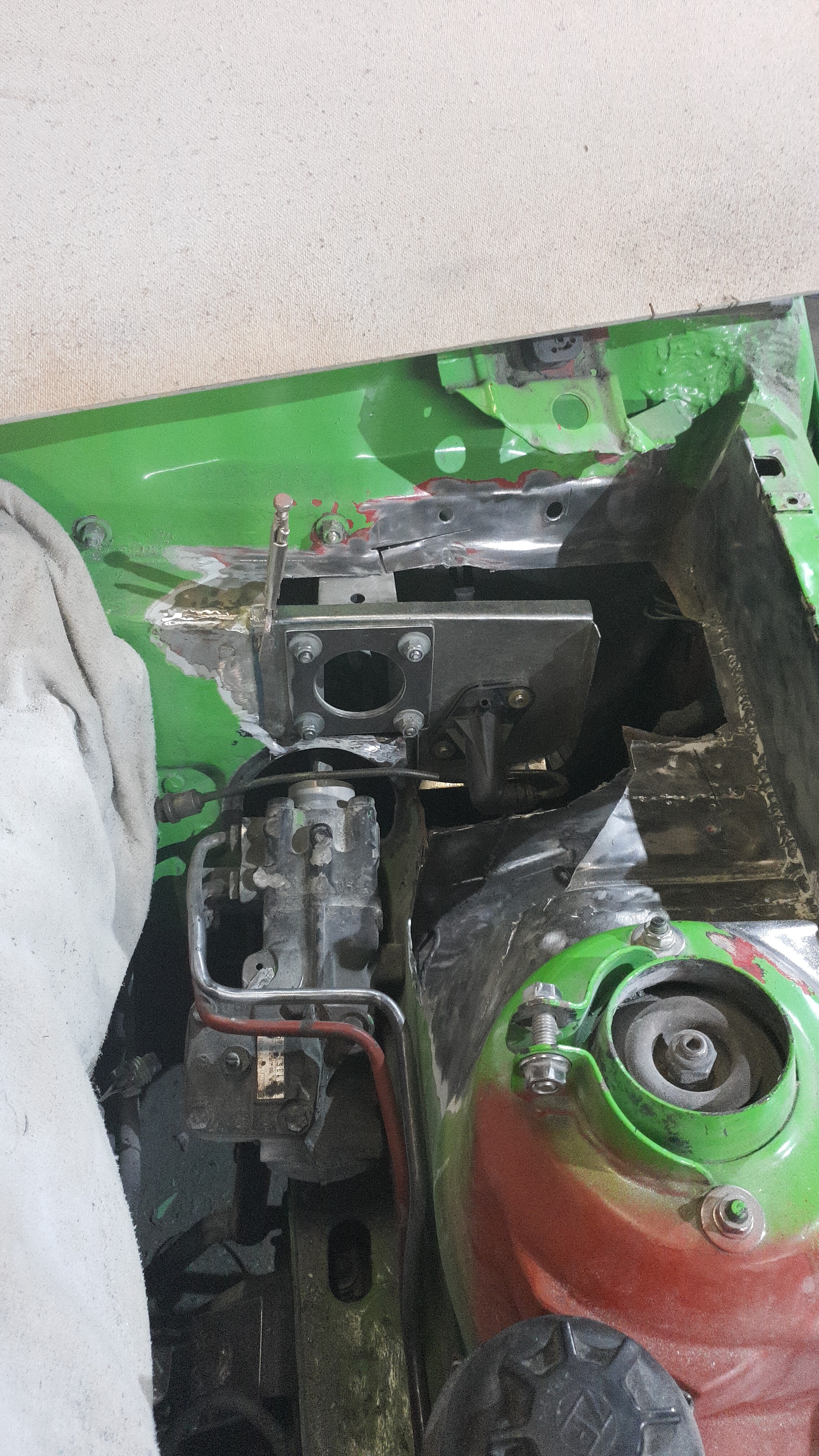 Problematisch ist/war nur das es kaum platz gibt. Und als ich endlich von dem " orginal" halter des hbz losließ, fand ich die lösung. Denn der flansch des hbz passt genau über das lenkgetriebe.