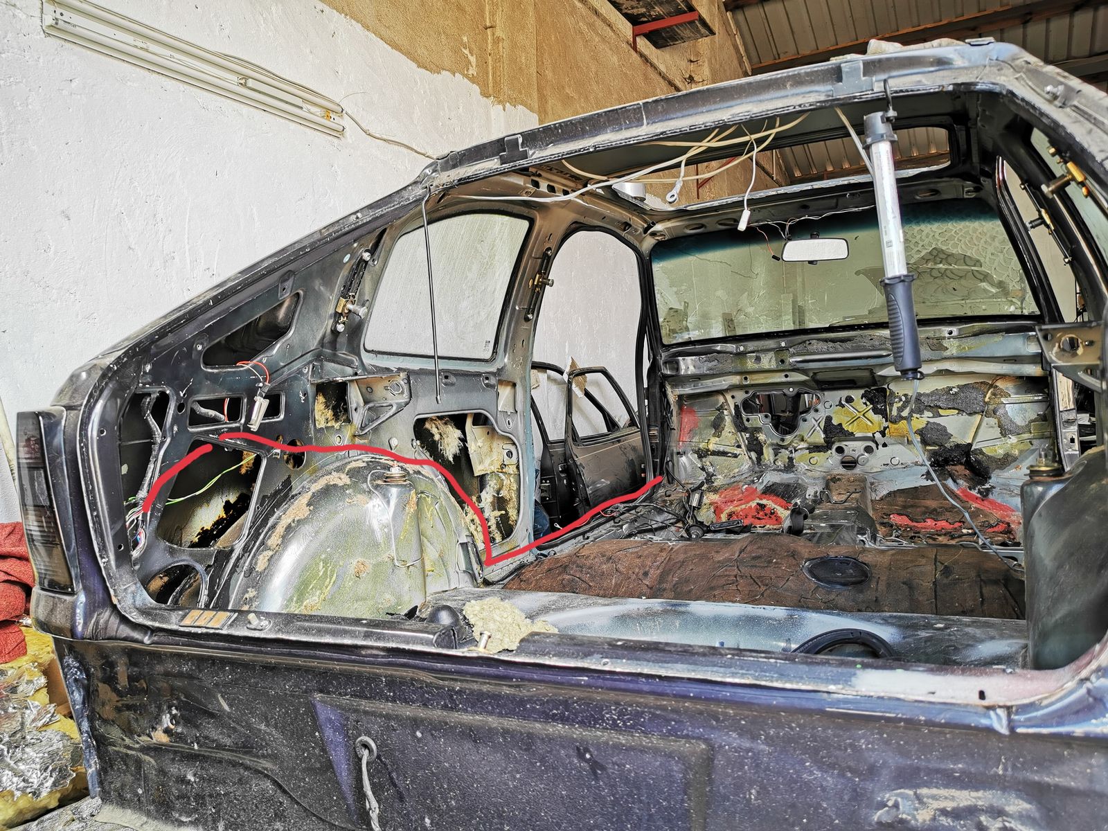 Der Kabelbaum verläuft links hinter der Seitenwand über den radlauf. Bei der Rucksitzbank nach unten am Schweller entlang bis zur Zentralelektrik im Fussraum unten links.