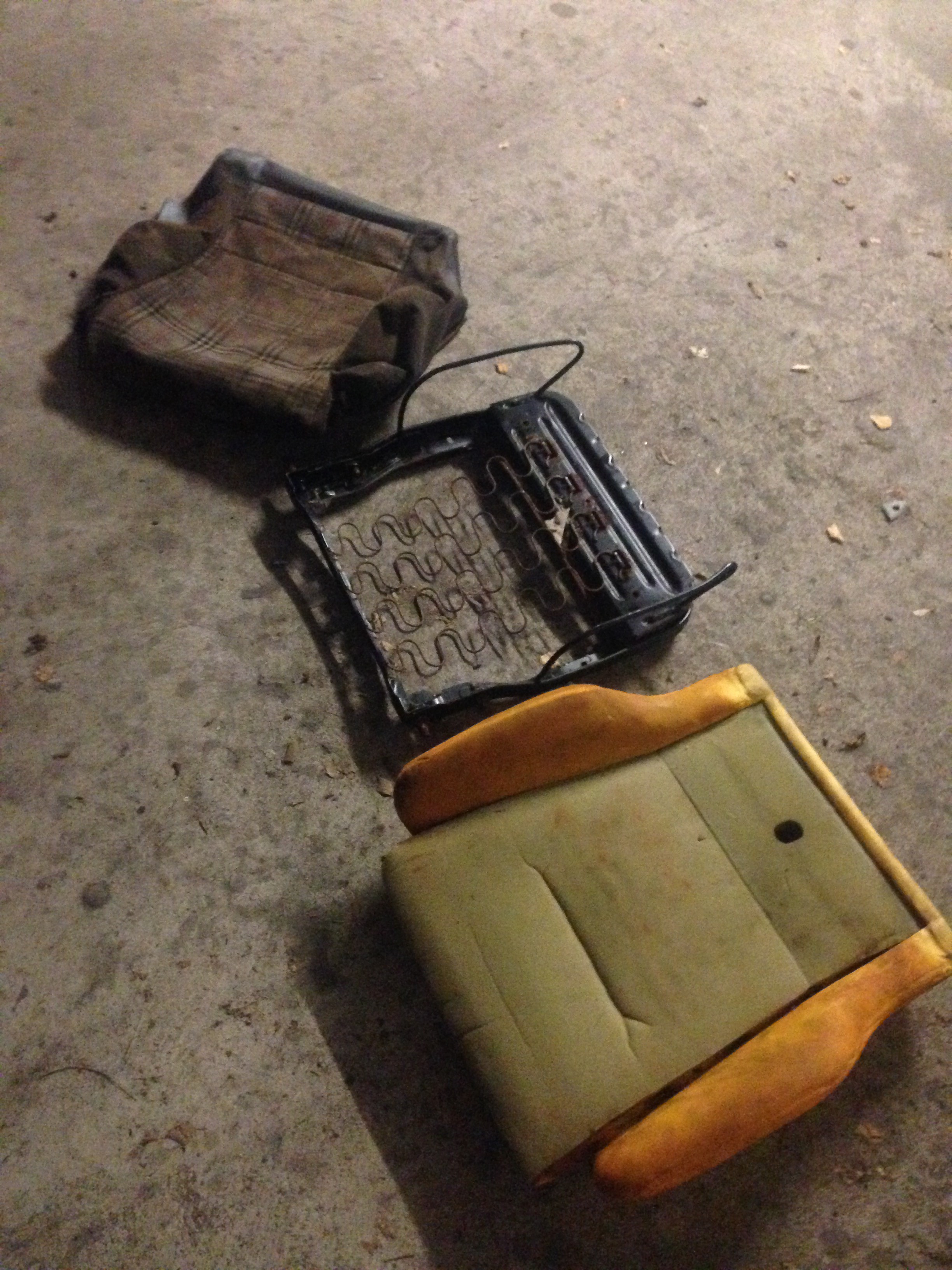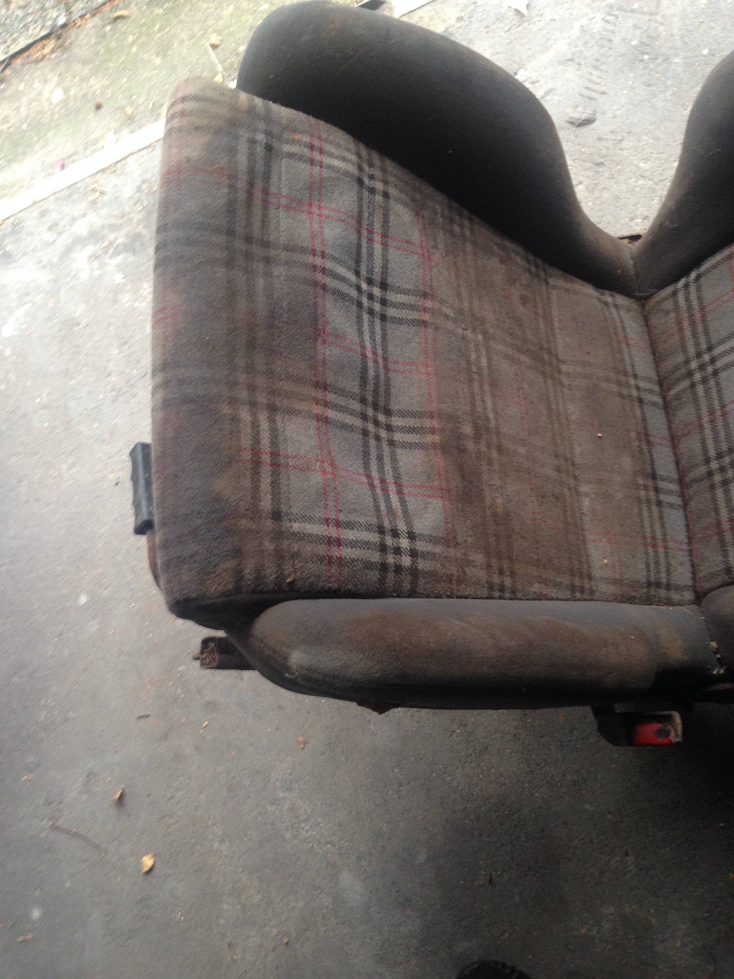 Sind zwar echt dreckig gewesen. 10 Jahre in der Scheune gelegen laut der Verkäuferin. Nur die Seitenwange des Fahrersitzes hat einen Loch von ca. 3cm.Hab die sitze auseinander genommen und angefangen sauber zu machen.