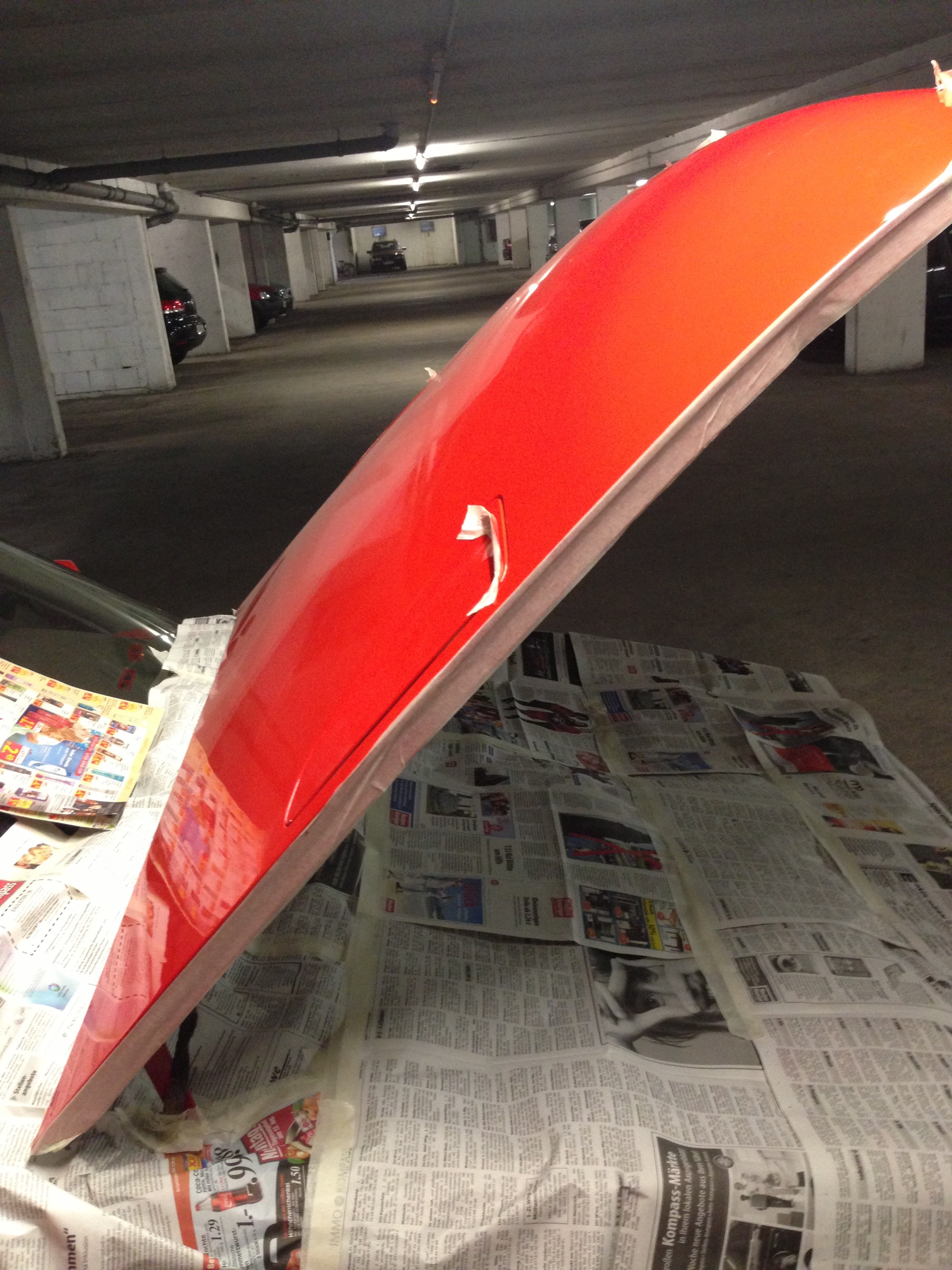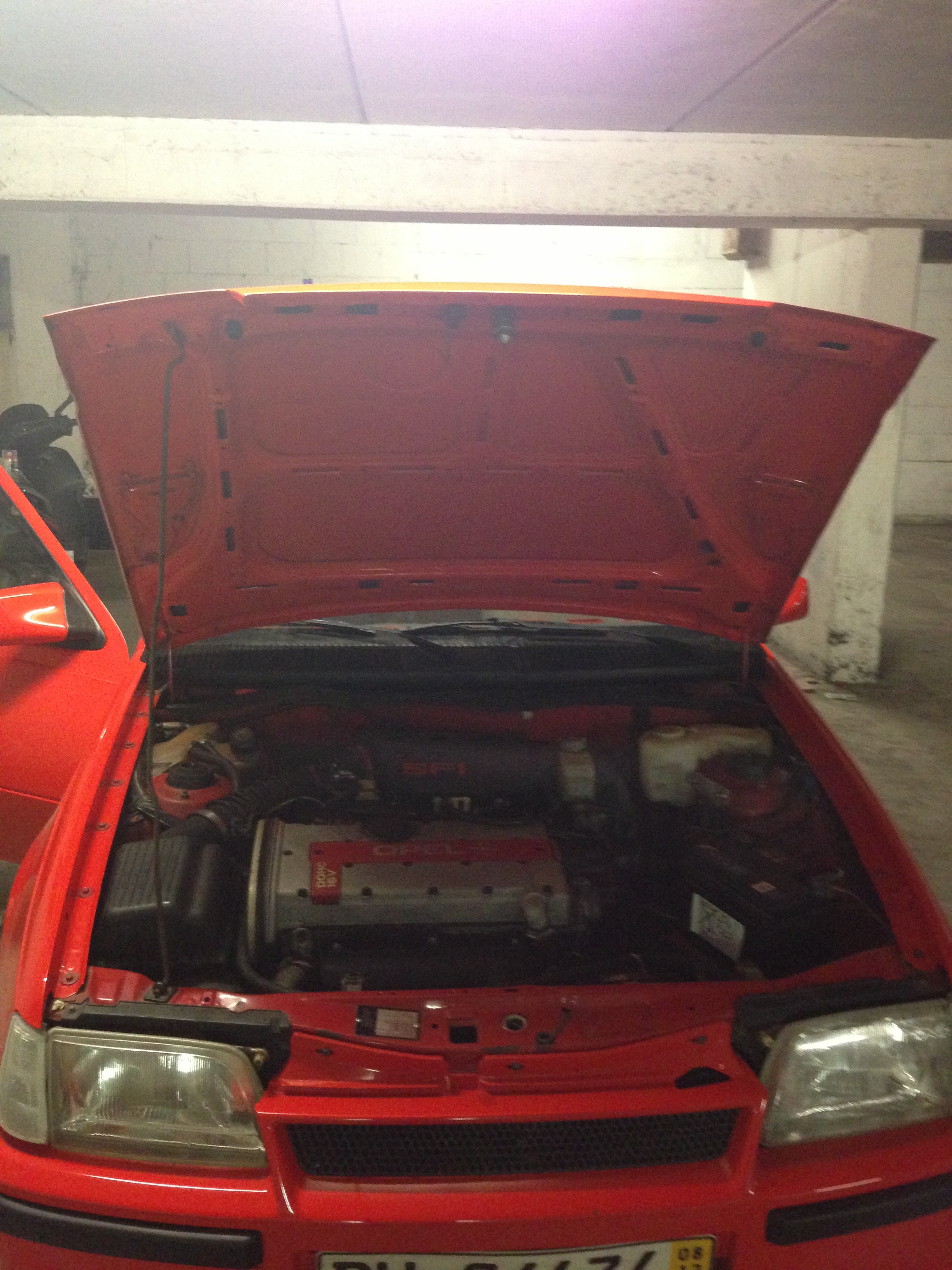 Da ich zu dem Zeitpunkt am Motor anfangen wollte, hatte ich echt nicht die nerven mir die total unpassende weiße Innenseite der Motorhaube anzugucken.