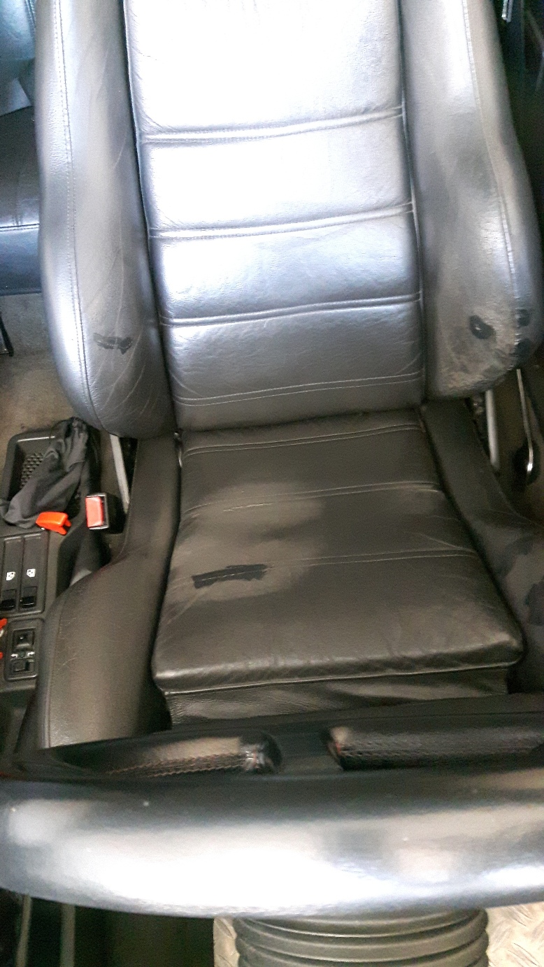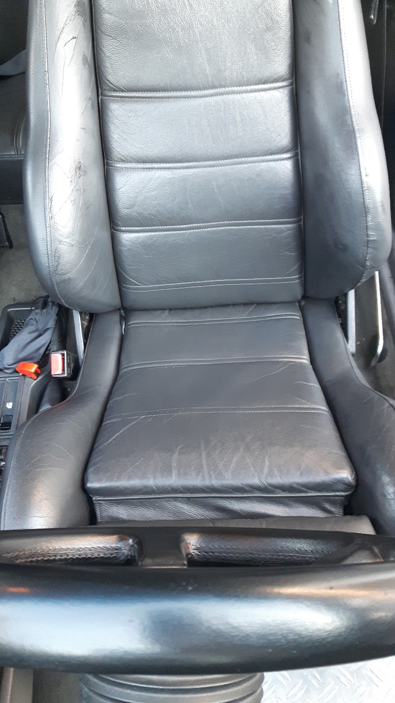 Und nach dem ersten Durchgang mit LederFresh (die Flecken die zu sehen sind liegen daran, dass es noch nicht getrocknet ist und auch nochmal frisch Flüssigleder aufgetragen wurde):