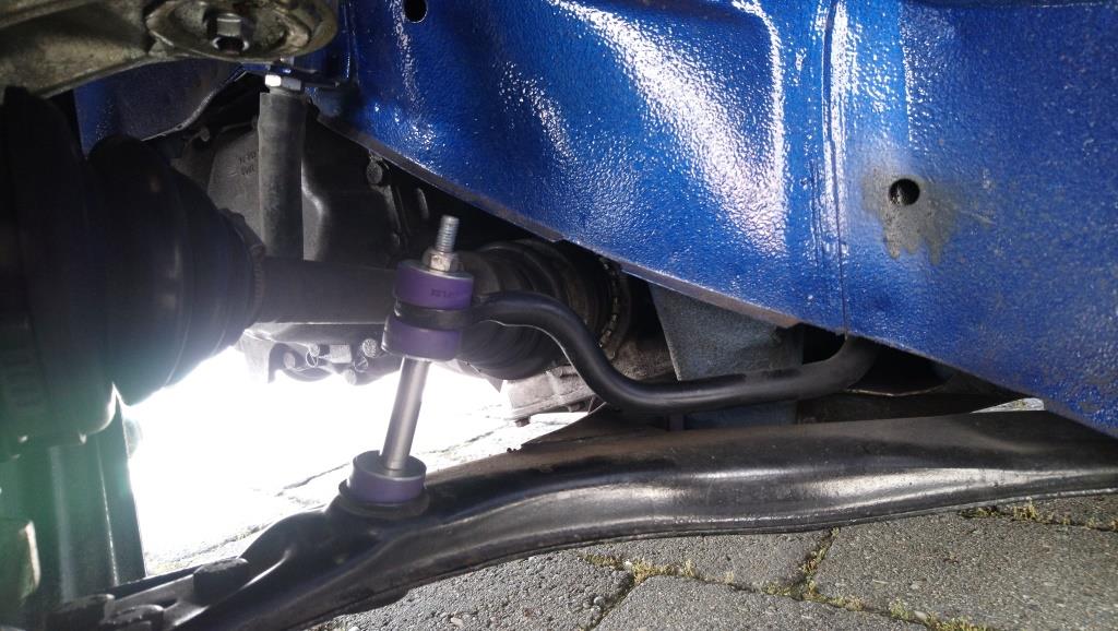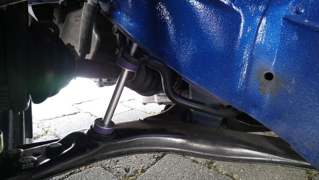 Vorher betrug die Länge 90mm, nun 50mm. Der Stabi steht nun eindeutig besser da im belasteten Zustand und die Aufnahmepunkte der Koppelstangen fluchten besser.