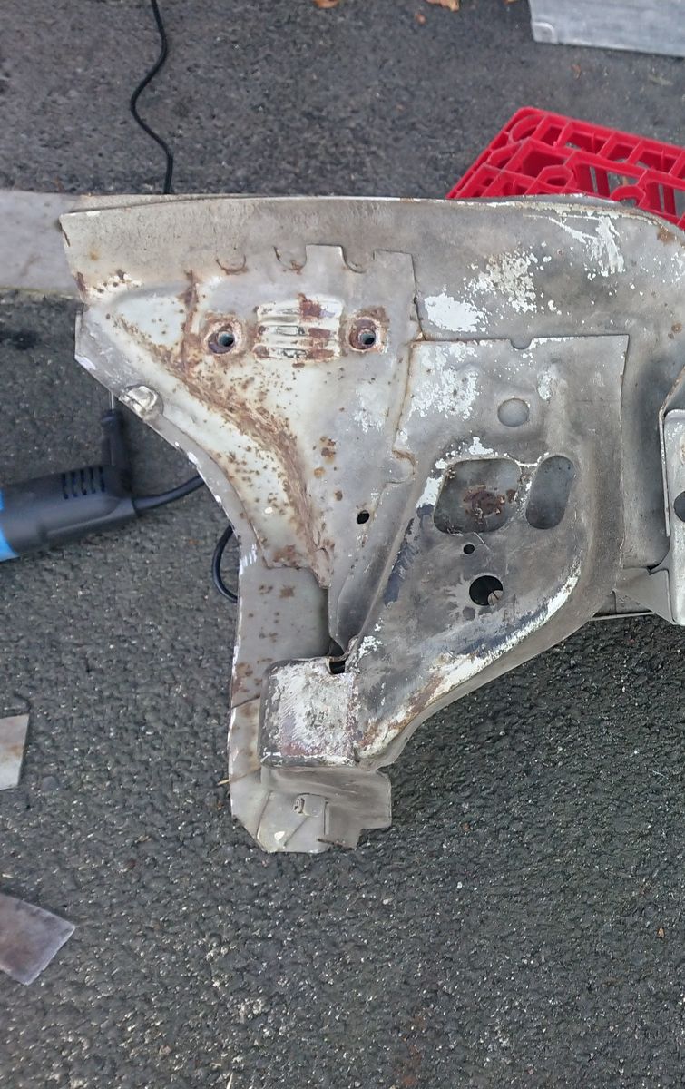 Ich werde erst mal das Erstazteil was ich habe weiter von den Bodenblech frei machen und blank schleifen.