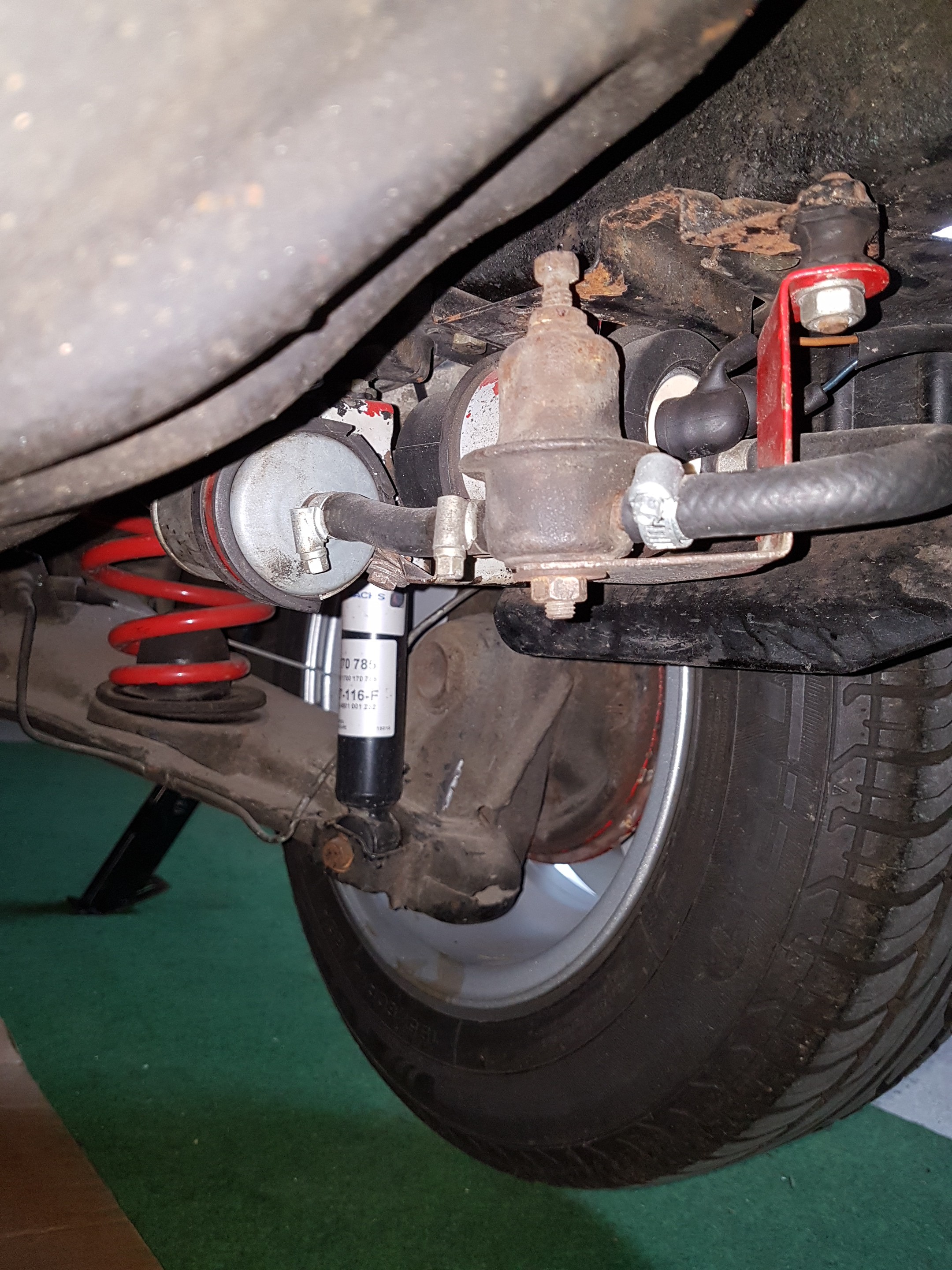 Der Vorbesitzer hat den Wagen so verbastelt das es nimmer schlimmer geht. Vorne waren Dämpfer eines vw Derby verbaut. 3mm Spiel im domlager....um nur mal ein Beispiel zu nennen...