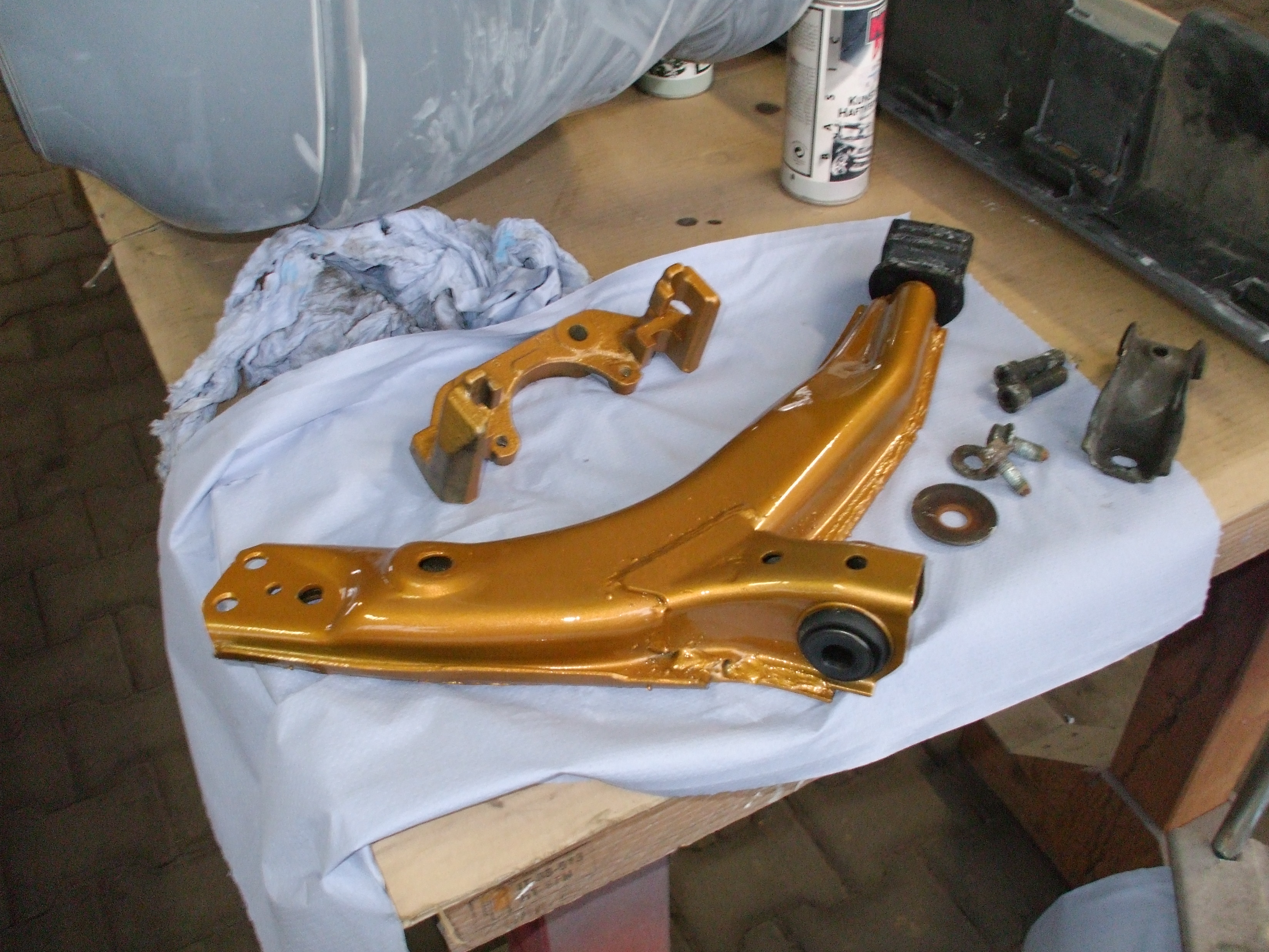 Auch die Farbe für die Achse, Querlenker usw. stammt aus der Japanischen Kiste. Zum Motor, natürlich wurde der komplett überholt und einige Modifikationen vorgenommen. Steurgerät von EDS. Alles in allem könnte ich heute mit Sicherheit ein schönes Stattliches Auto fahren. Das wäre aber kein KADETT E GSI Kultauto!!!