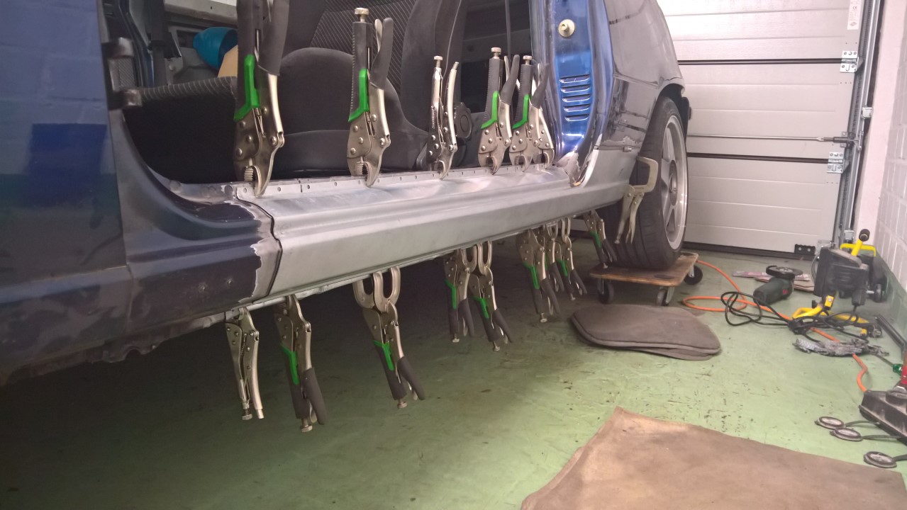 Ich habe den linken Schweller rausgerissen, den Innenschweller ordentlich gereinigt und mit Rostschutzfarbe behandelt, Reparaturschweller 1000 mal angepasst, stückchen zugeschnitten, ein wenig gedengelt und wieder zugeschnitten, an alten blechen das schweißen geübt, bis ich keine Löcher mehr ins Blech gebrannt habe und unter fachkundiger Beratung befreundeter C Kadett Fahrer den neuen Schweller reingeschweißt ^^