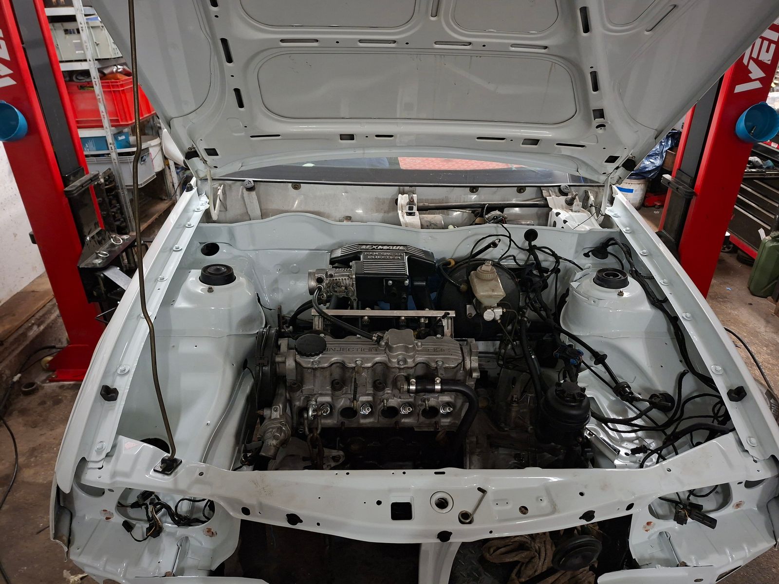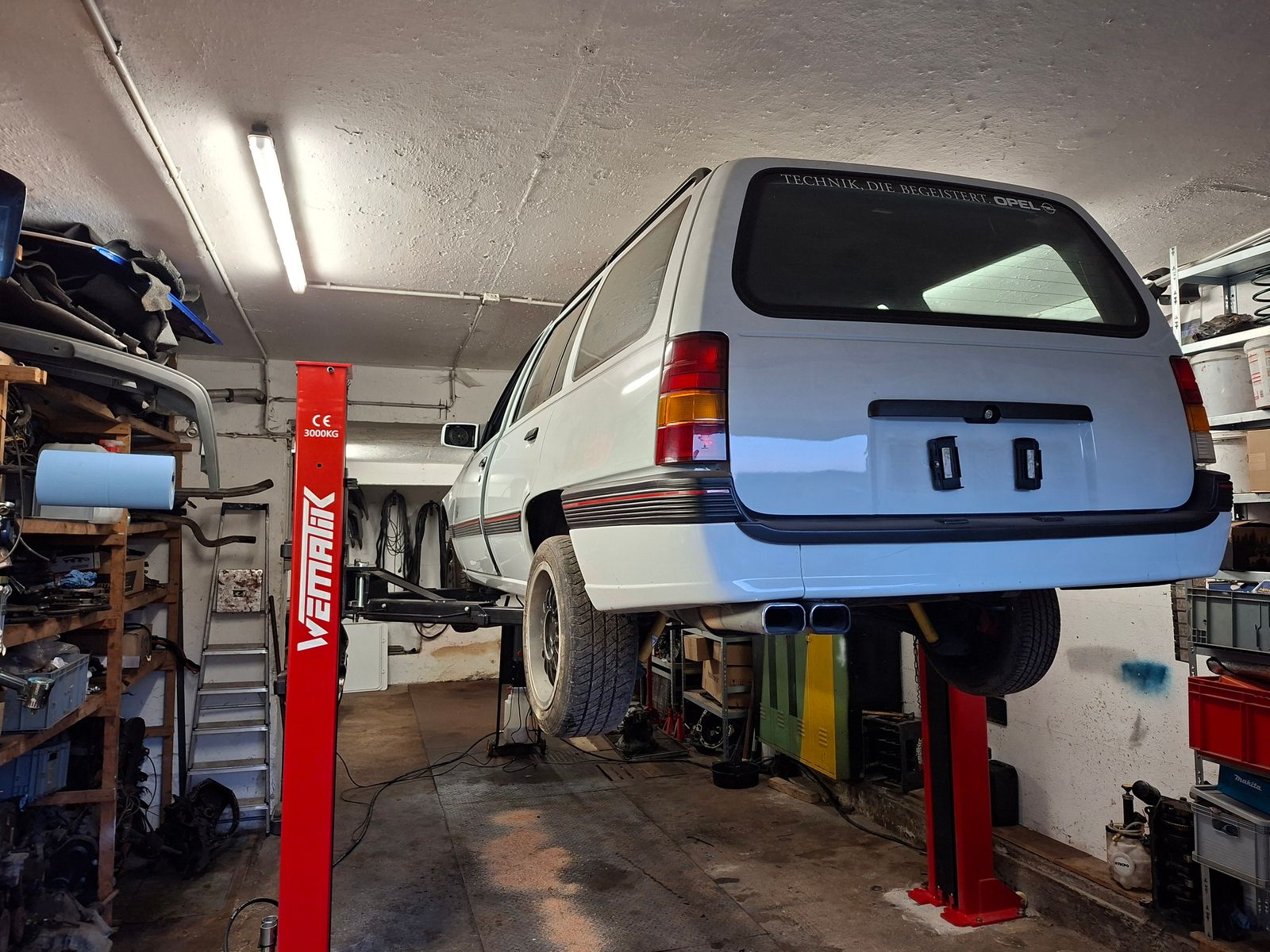 Zwischenzeitlich habe ich mir einen Rücken freundlichen helfer gegönnt. Da ich gesundheitlich an der Wirbelsäule ziemliche probleme habe, führte kein weg mehr drumherum. Nicht die Optimalsten voraussetzungen (Deckenhöhe, schiefer boden) in meiner Werkstatt aber es erfüllt seinen Zweck. Die Wahl der Hebebühne gestaltete sich schwierig und die wahl fiel auf die "Mobile" 2 Säulenhebebühne New Orleans 3plus von Wematik. Zufrieden bin ich im nachgang nicht mit der wahl aber sie tut was sie soll und ich arrangiere mich damit so gut es geht.