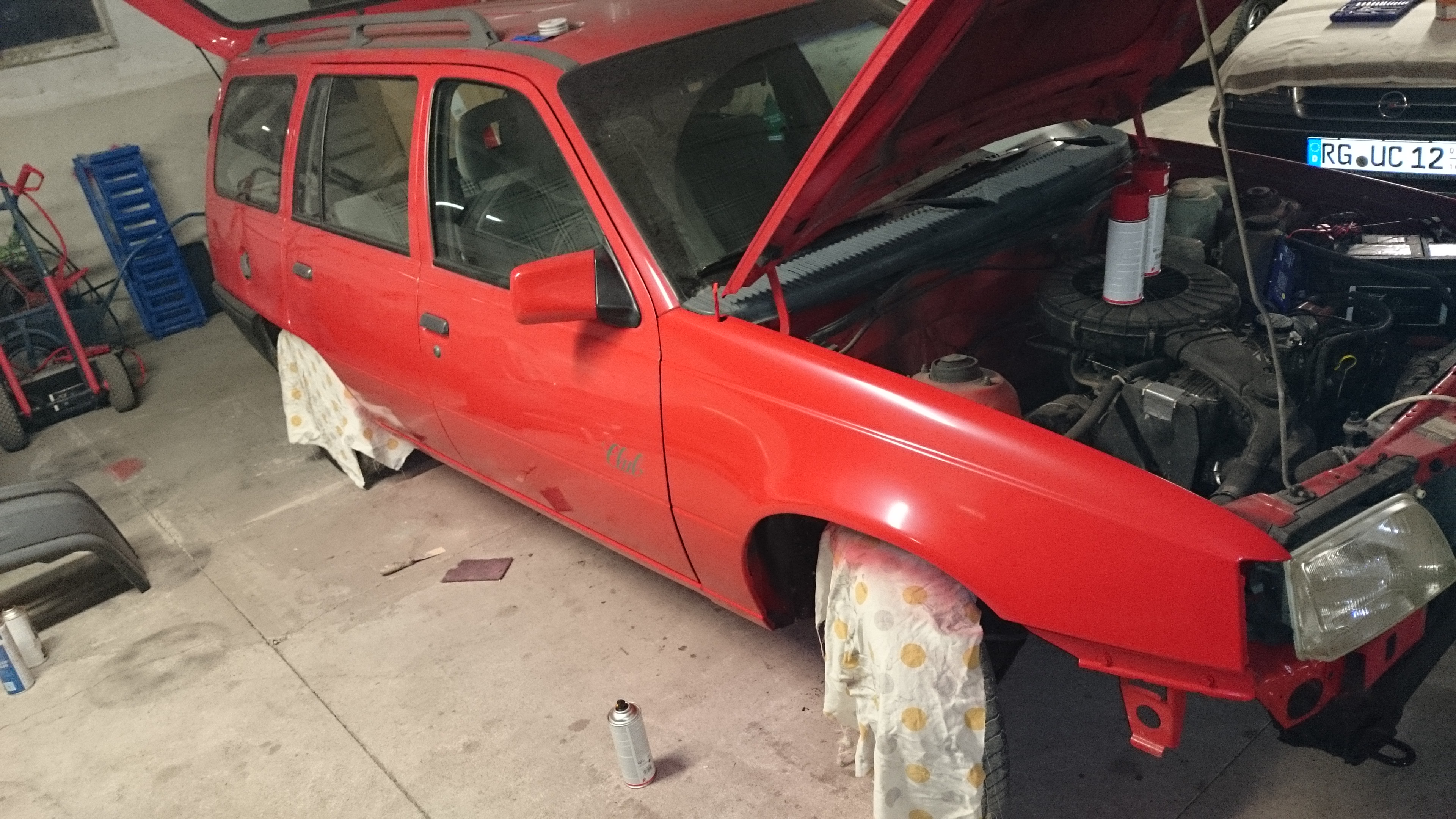 Beim Kadett muss ich noch dem restlichen Rost und der Delle im Kotflügel zum Leib Rücken.