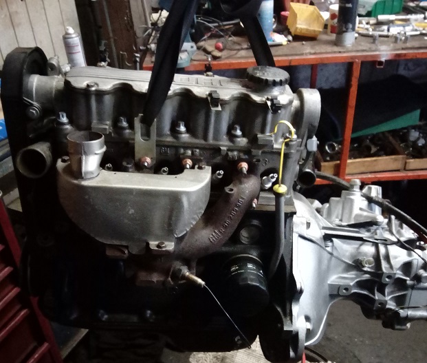 Motor Getriebe raus, das 5 Gang mit neuer Kupplung und Ausdrücklager kommt rein. Motorraum wird Grundgereinigt und alles wieder an seinen Platz.