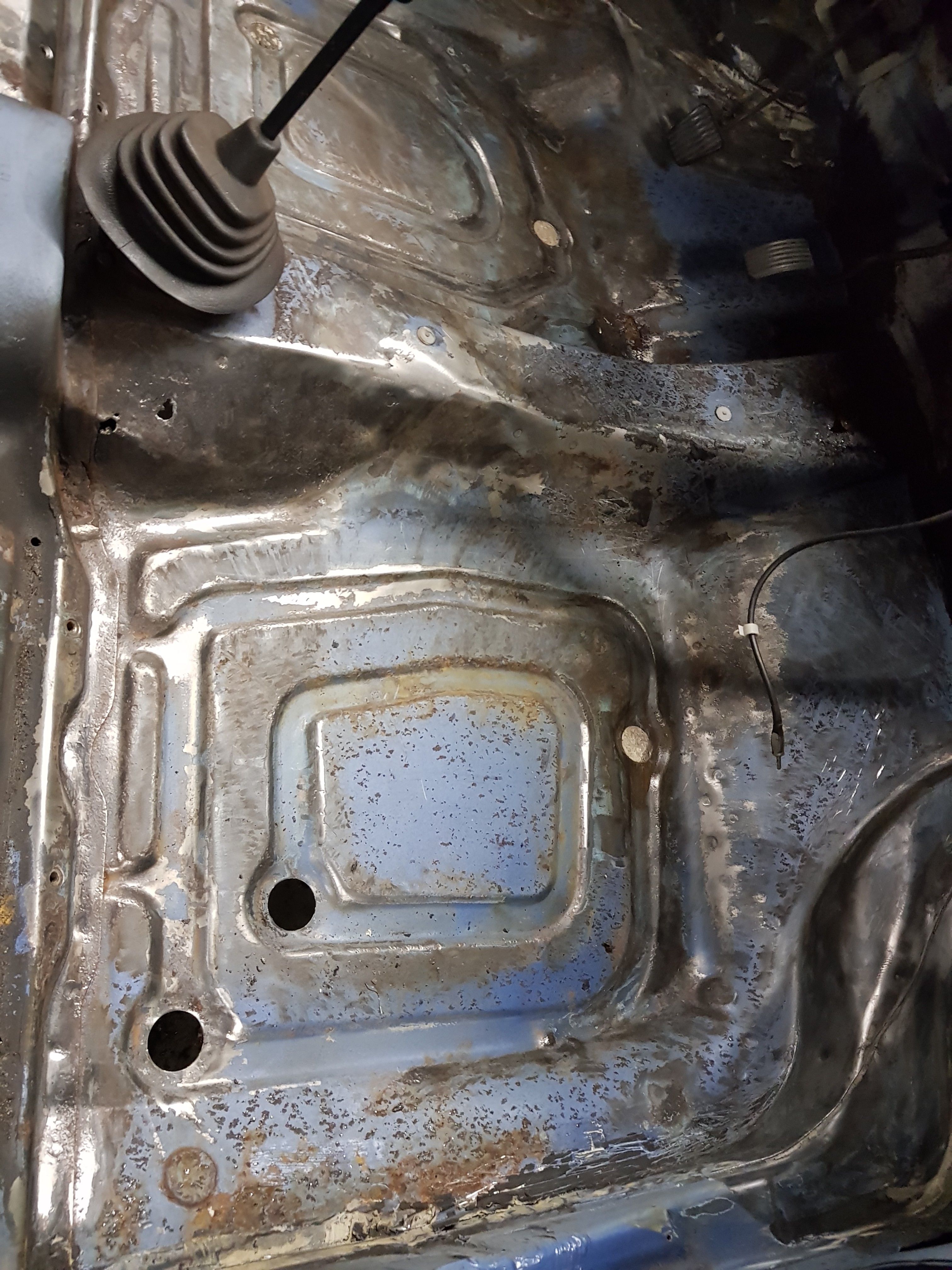 Auf der Fahrerseite werden wir nicht das komplette Boden tauschen, weil es auf den Bildern viel schlimmer aussieht als es wirklich ist. Ich werde trotzdem wo das Loch ist grossflächig rausschneiden und den hohlraum entrosten.