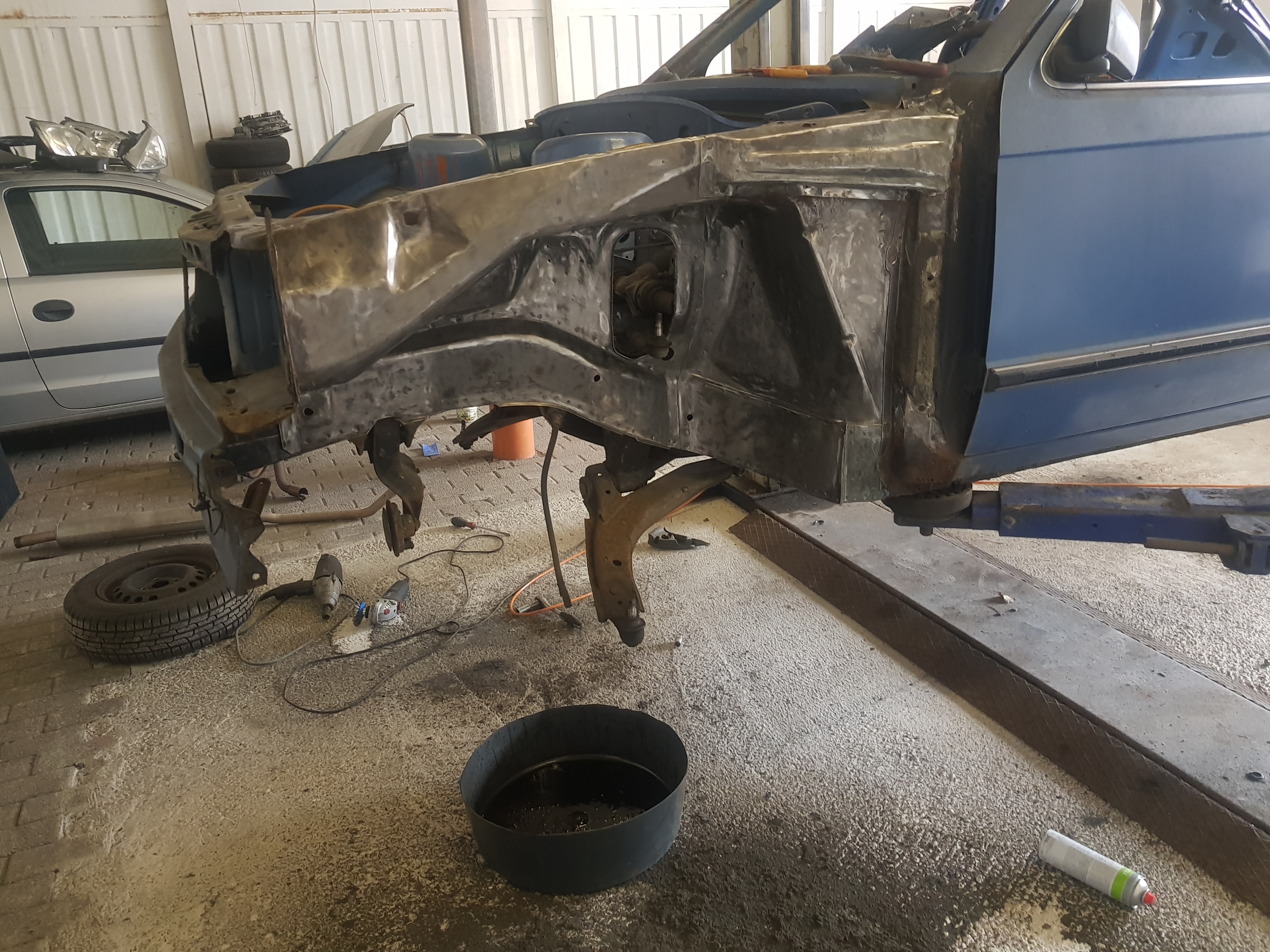 Eigentlich wollte ich heute bei dem kadett weitermachen und schweißen. Als wir in der Halle angekommen sind kam kurze Zeit später mein Vermieter der mir die Halle untervermietet vorbei. Er kam auch leider mit schlechten Nachrichten. Der Eigentümer von der Halle hat uns bis zum 1.4 gekündigt. Und da ich es jetzt Quatsch finde den kadett weiter auseinander zubauen wird der jetzt wohl erstmal so bleiben wie er ist. Ich muss jetzt erst nach einer neuen Halle suchen was richtig schwer sein wird. Ich hab noch 3 andere Autos eine Menge Werkzeug motorkran und eine Menge Teile die ich unterbekommen muss. Außerdem hab ich im Frühjahr noch meine Abschlussprüfung.