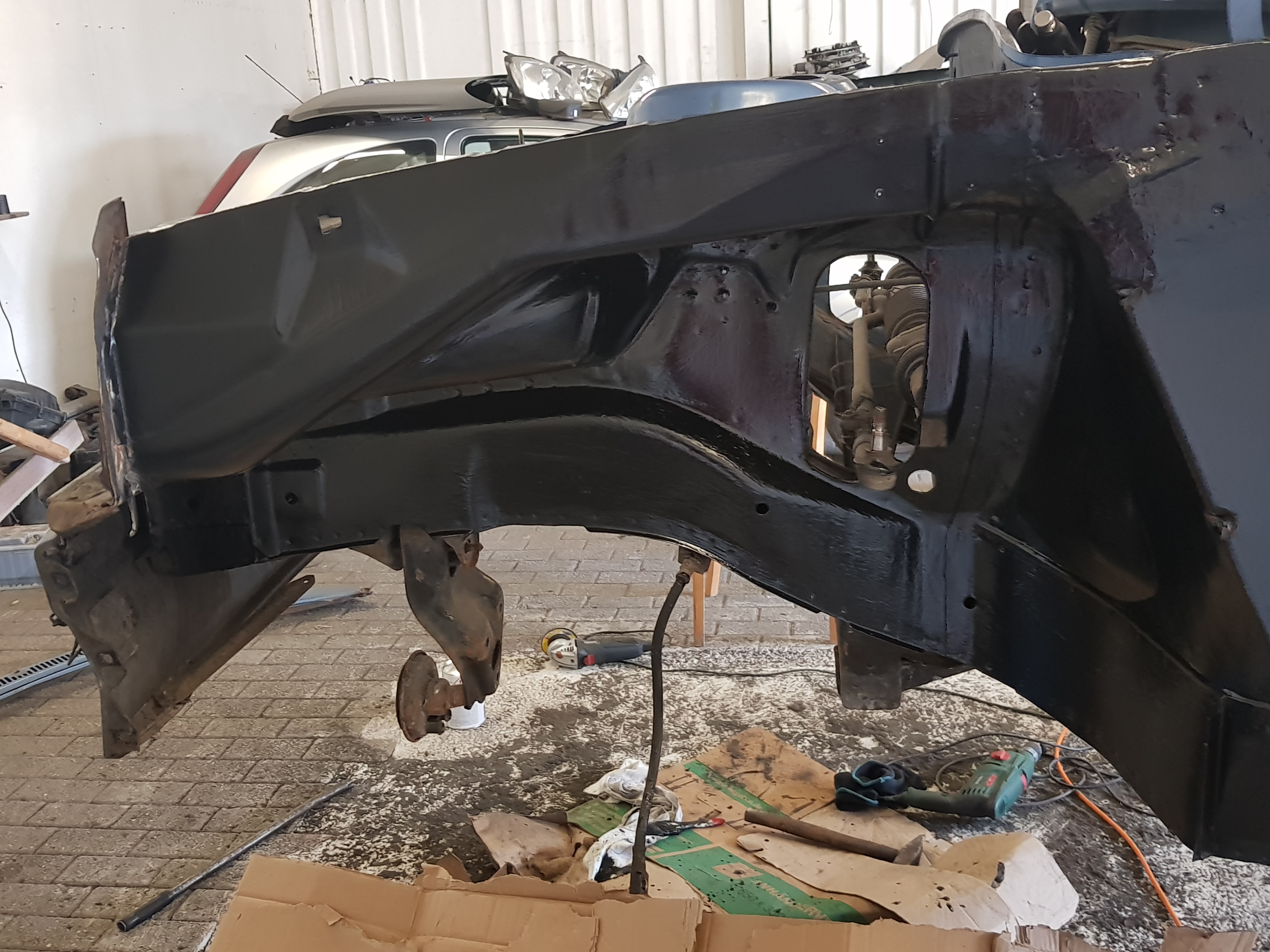 Jetzt fehlen mir noch die A-säulen rechts und links, und vielleicht noch das stück unterm scheibenrahmen,( wo die scheibenwischer sind) das würde ich auch am liebsten komplett erneuern. Heute konnte ich leider nichts machen da ich von der Firma aus eine Gefahrgut und Ladungssicherung Schulung hatte
