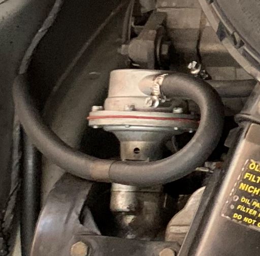 Dann ist die Dichtung der Benzinpumpe hinüber. Ich vermute die lässt sich auch selbst aus einer Dichtplatte schneiden, ein original wäre natürlich schöner