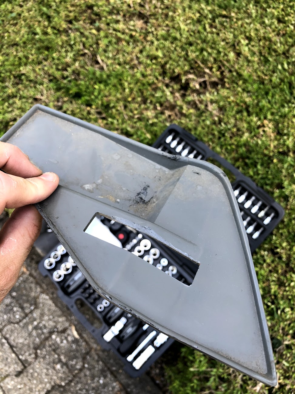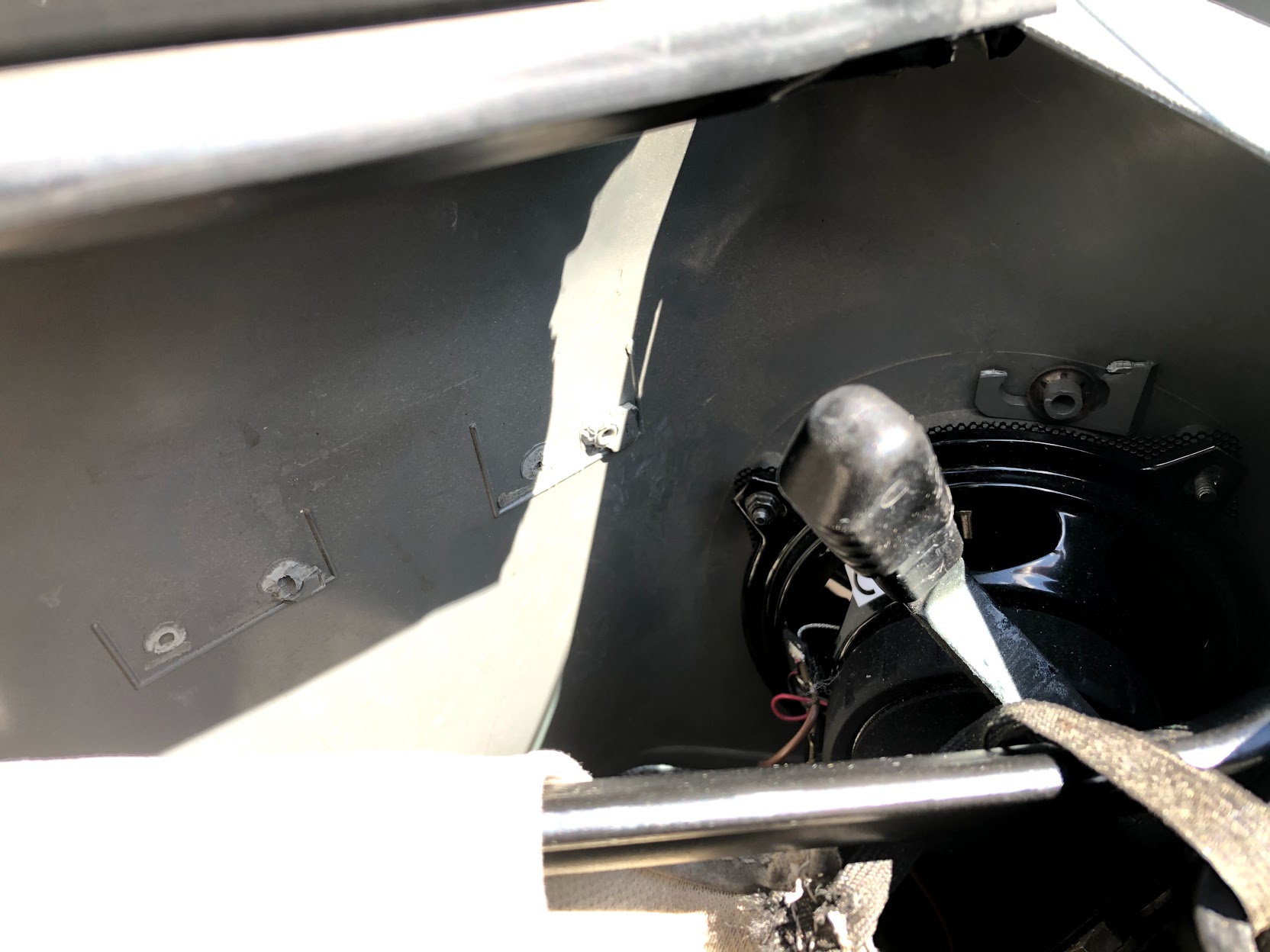 Bei mir ist dieses Teil einseitig lose. Ich habe es mir noch nicht genauer angeschaut, vermute aber, dass etwas gebrochen ist. Kann mir jemand sagen, wie das Teil an der Seitenabdeckung befestigt ist?