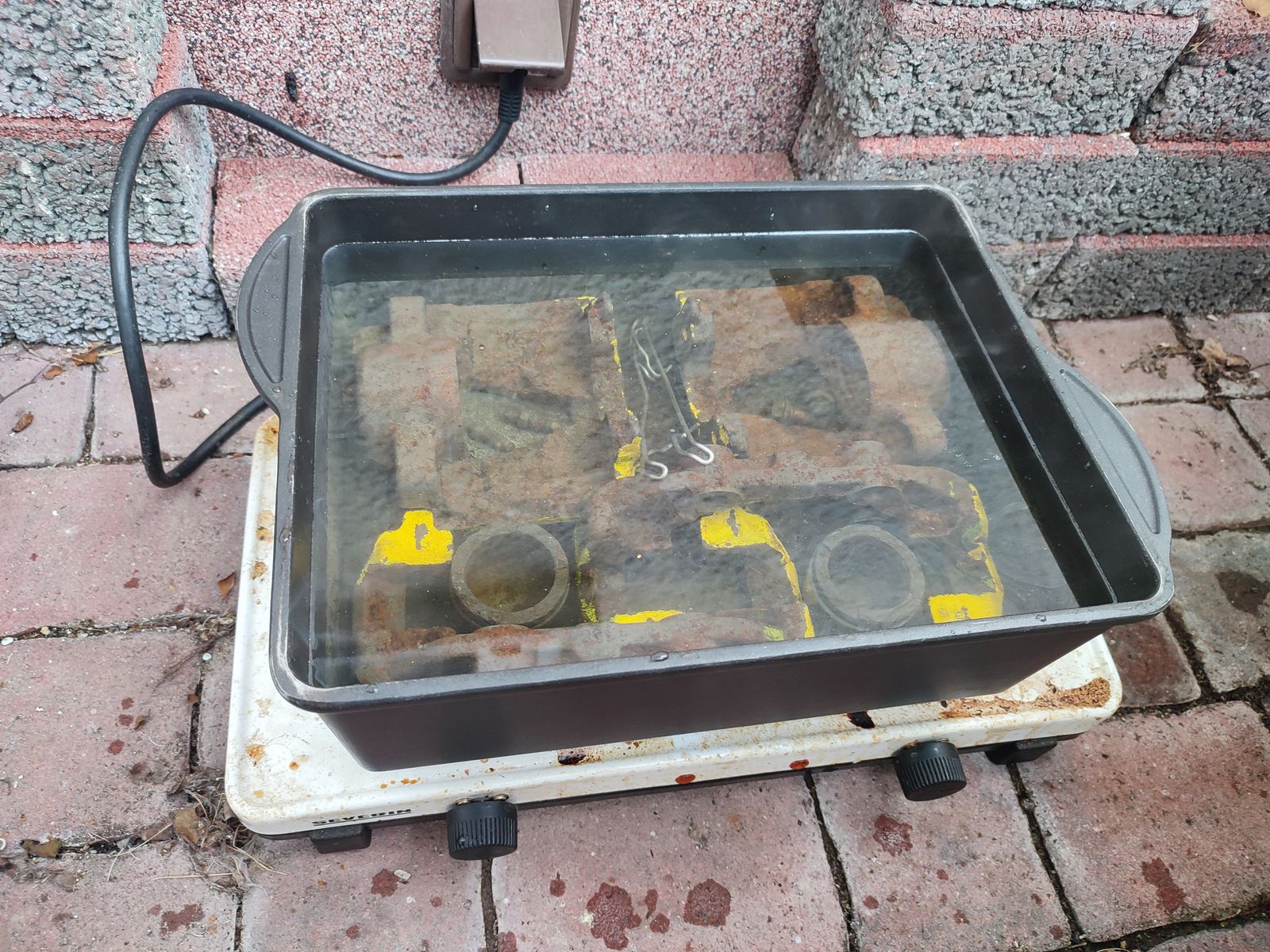 Habe die Teile jetzt wieder in einen Eimer mit frischen Waschwasser gelegt, damit sie nicht rosten. Ich weiß noch nicht genau wie ich damit weiter machen soll