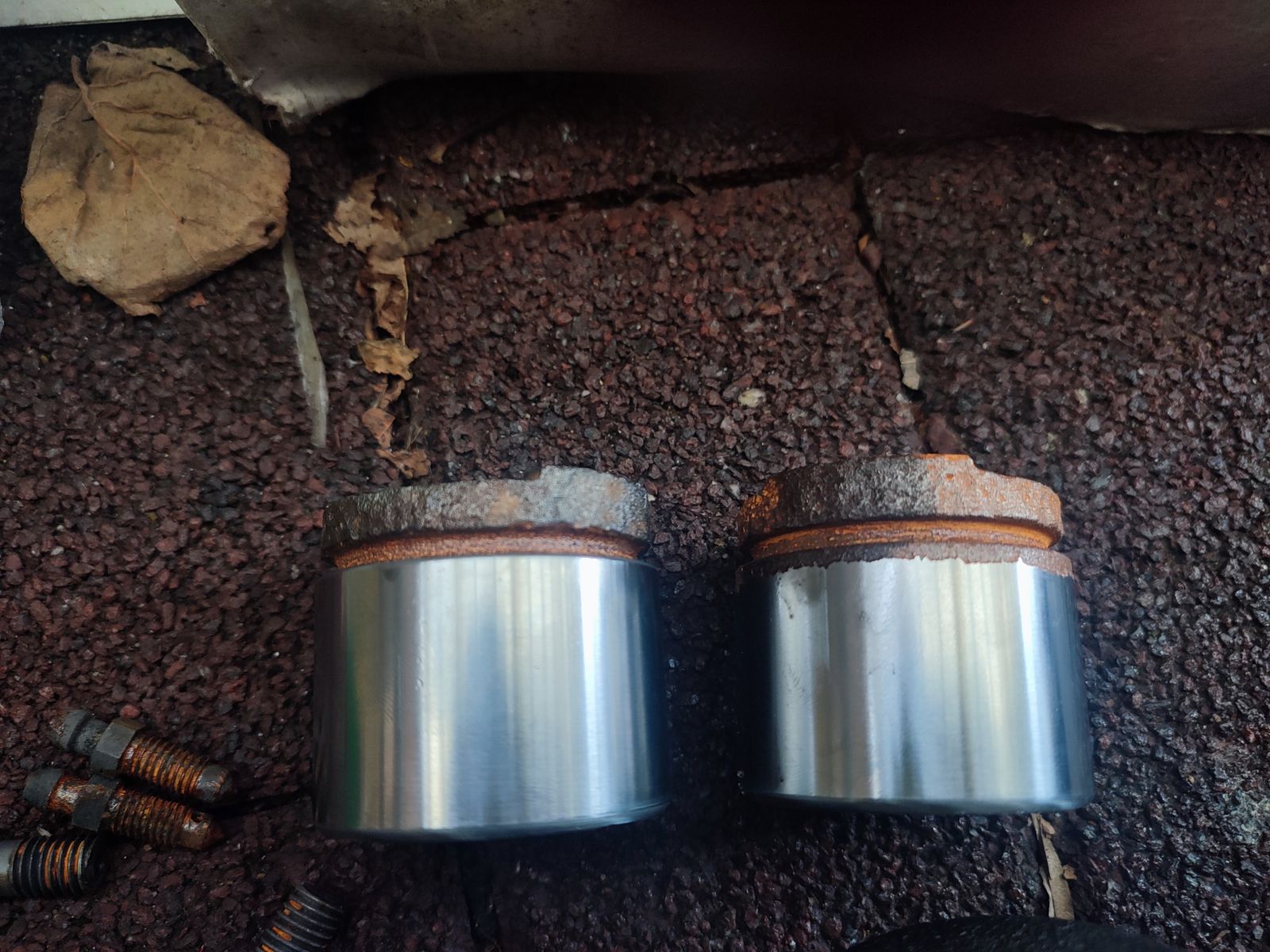 Einen Bremskolben muss ich definitiv erneuern, der andere sieht dagegen um einiges besser aus. Vielleicht mache ich auch beide neu: