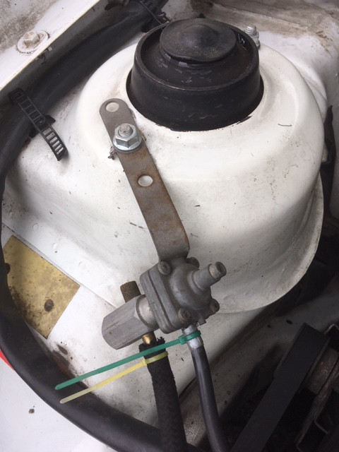 Hintergrund der Frage ist, dass vermutlich der Vorbesitzer den mit dem gelben Kabelbinder markierten, dickeren Schlauch mit einer Schraube verstopft und ihn wieder auf das Teil gesteckt hat.