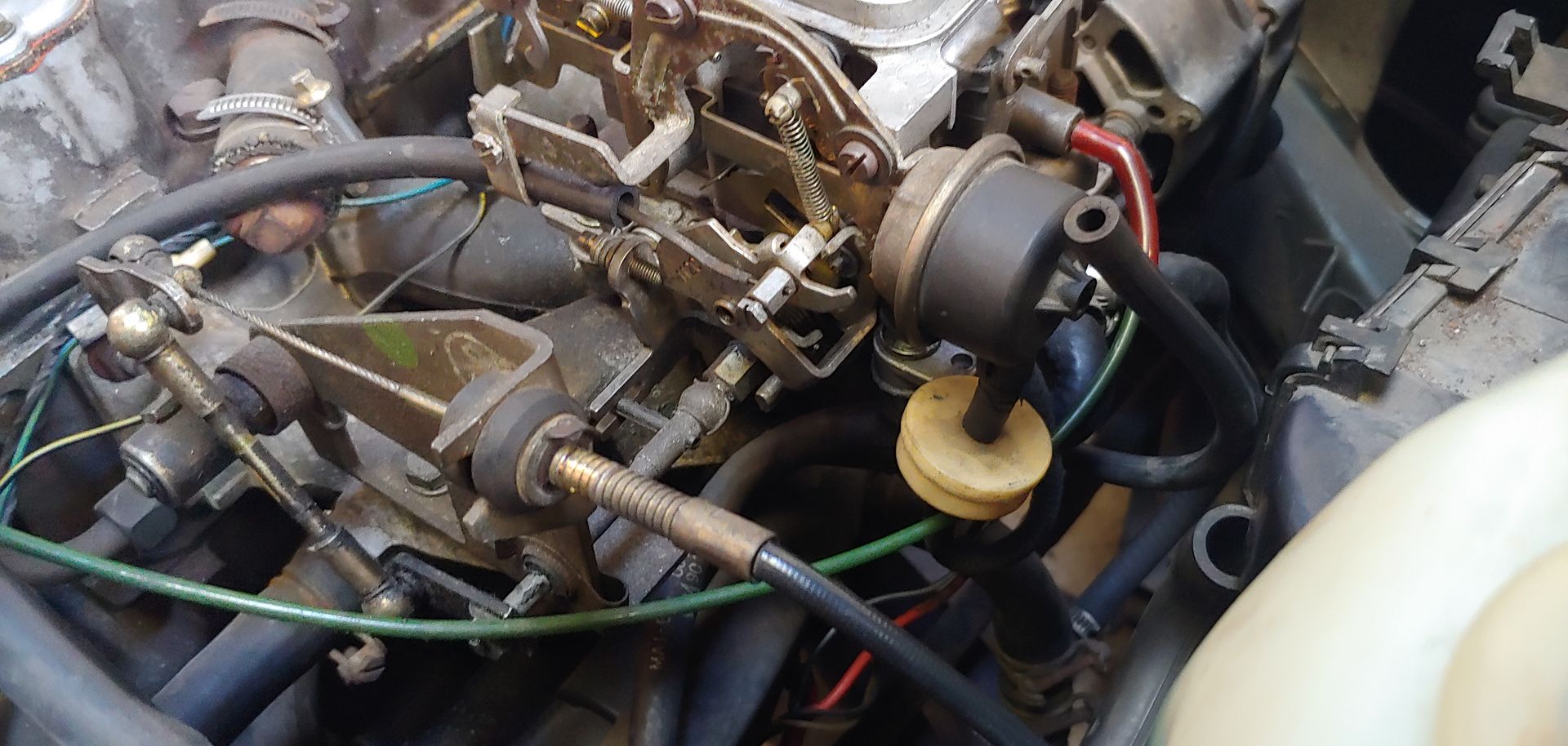 Die Zwischenplatte unter Deinem Vergaser fehlt definitiv bereits! Kann man auch an den lang herausstehenden Stehbolzen erkennen. Die Wasseranschlüsse an der Drosselklappe sind so korrekt, da Dein Kadett bereits eine Drosselklappeneinheit mit Vorwärmung besitzt.