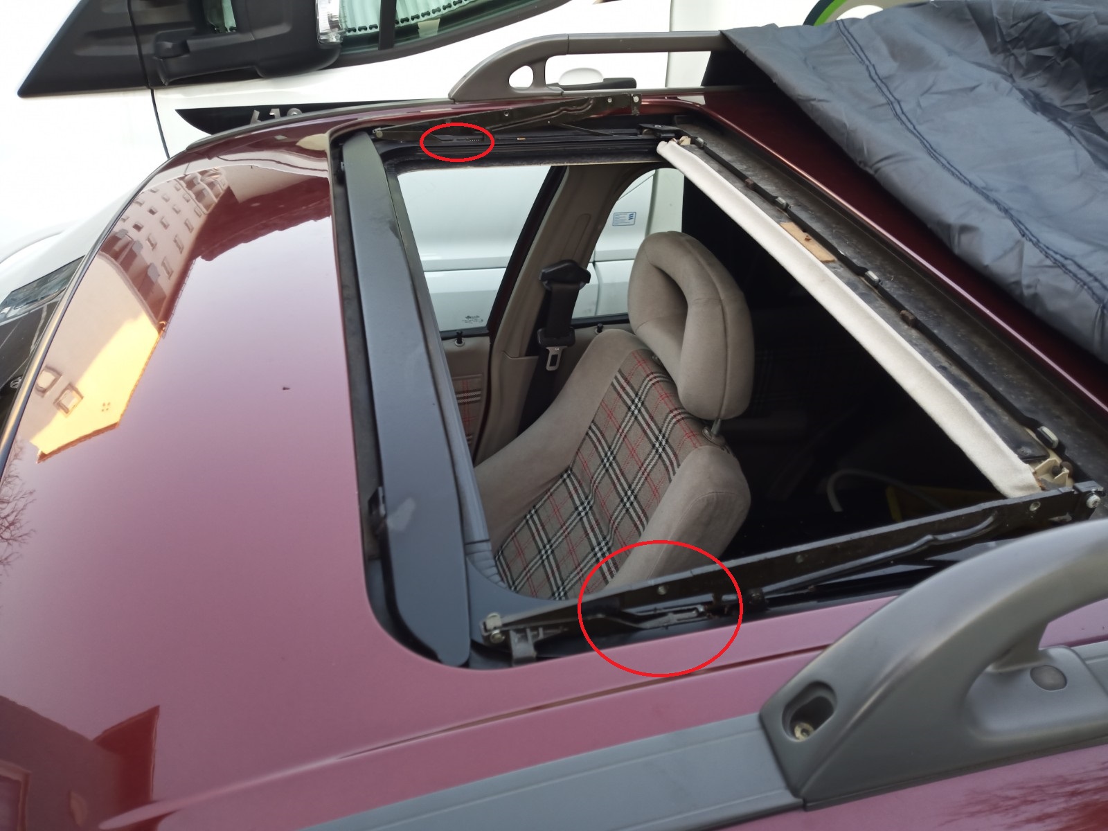 Die Aufstellfunktion geht ohne Probleme, nur nach hinten lässt es sich nicht komplett öffnen. Es kippt hinten nur etwas runter und dann geht nichts mehr. Daruf hin habe ich innen den Plastikrahmen ausgecklickt und die 6 Schrauben gelöst, die die Glasscheibe halten. Unter dem Glas kommt man an den Mechanismus.