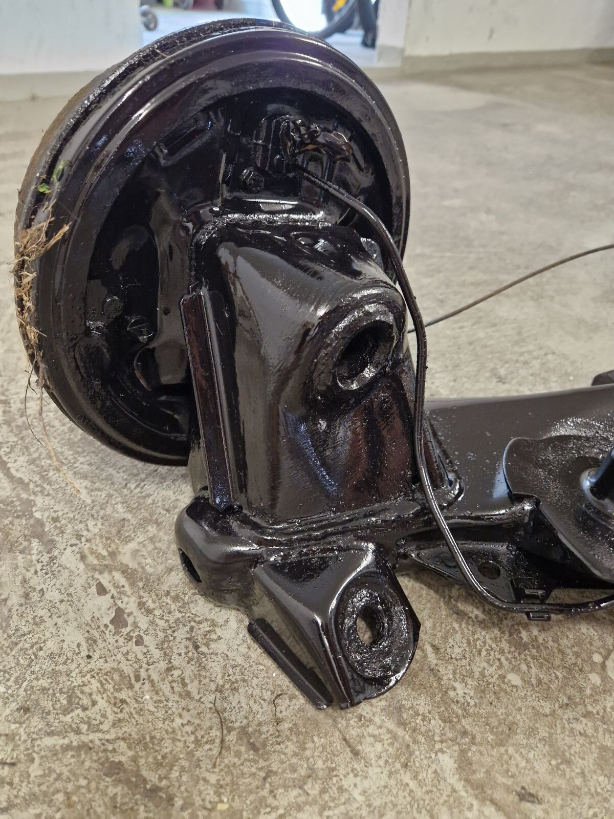 Ich hab mich für den einfachen Tausch für die verschweißte Variante ohne ABS Sensor entschieden. Teilweise war etwas Rost vorhanden. Hab die Achse mit der Drahtbürste und Rostumwandler behandelt und mit 2-K Lack lackiert. Ich hoffe das hält ersteinmal.