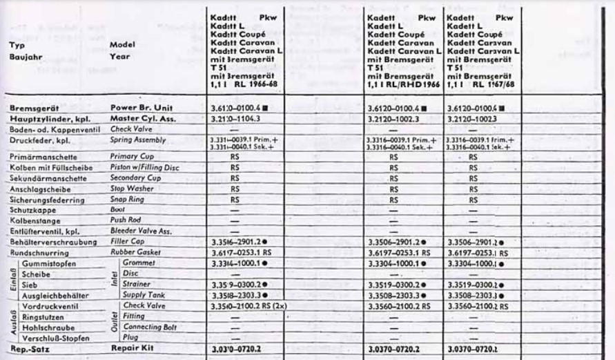 Hier mal eine Übersicht der zum Einsatz gekommenen Hauptbremszylinder; Auszug aus dem ATE-Teilekatalog.