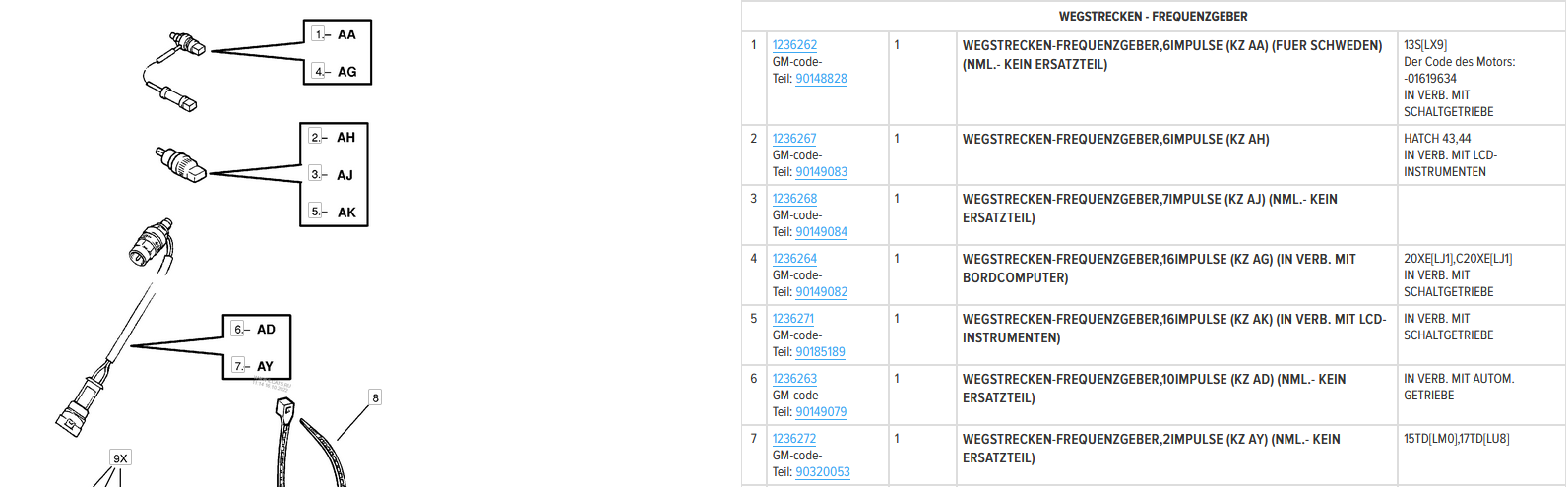 Die Kadett E mit LCD-Tacho brauchen diesen Sensor ebenfalls, aber anscheinend nur für das Geschwindigkeitssignal für den Tacho.