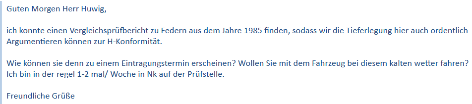 Habe mal angefragt .Was würde denn Alternativ funktionieren? Beschaffung wird wohl nicht so einfach werden .H&R hatte ich Anfang der 90er im Kadett .