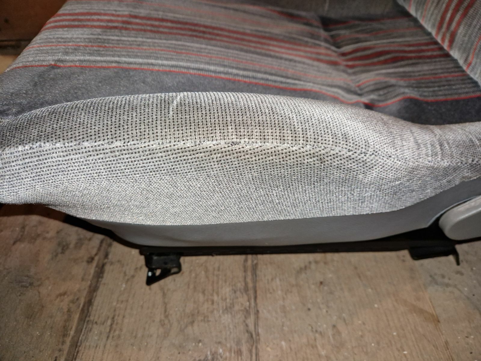 Fahrersitz mit typischen Abnutzungen an der seitlichen Wange, Beifahrersitz ist soweit okay.