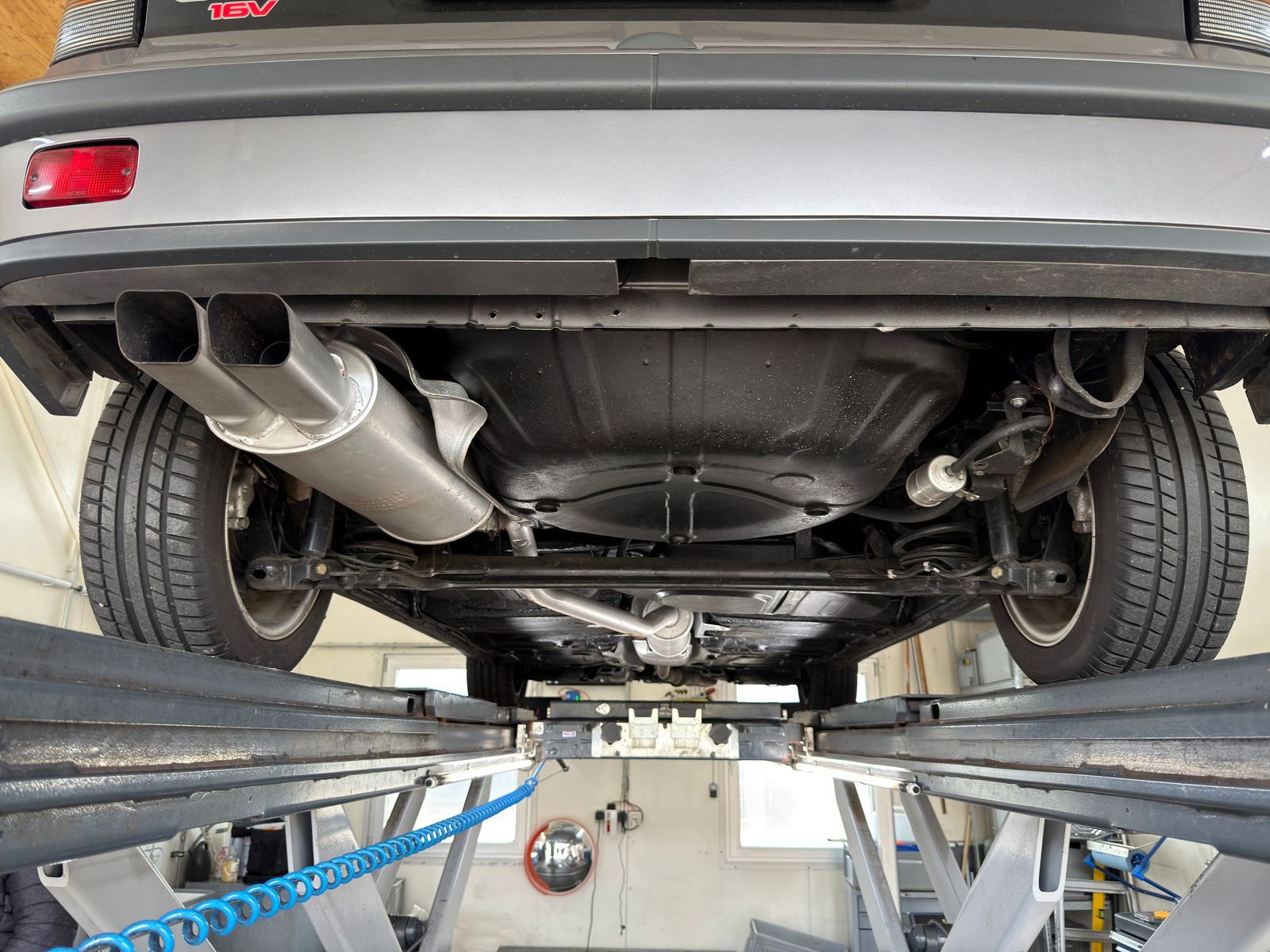Als ich jetzt meinen "neuen" Kadett bekommen habe ich mich noch gefragt, wie da jemand noch an einen Originalauspuff kam, mit den zwei eckigen Rohren. Jedenfalls habe ich richtig Gefallen an den eckigen Rohren gefunden und finde, die stehen dem GSi eigentlich sehr gut. Jetzt habe ich hier irgendwo gelesen, dass der IMASAF wohl gar nicht so schlecht ist, wie von mir angenommen. Als ich jetzt Bilder für meine Vorstellung hier rausgesucht habe, habe ich mir die Bilder vom Unterboden aus dem Oldtimergutachten nochmal angeschaut, mich daraufhin unter den Kadett geschoben und siehe da: Es ist der IMASAF drauf.