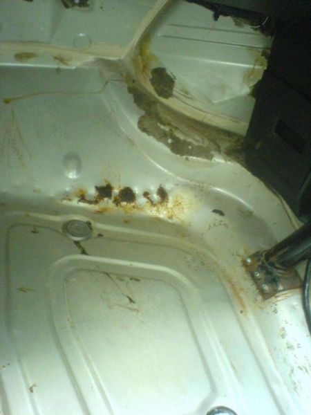 Unter den Teermatten versteckt sich ca eine 7x15cm große Durchrostung. So habe ich jetzt momentan eine Fußraumbewässerungsanlage(wenn es regnet)
