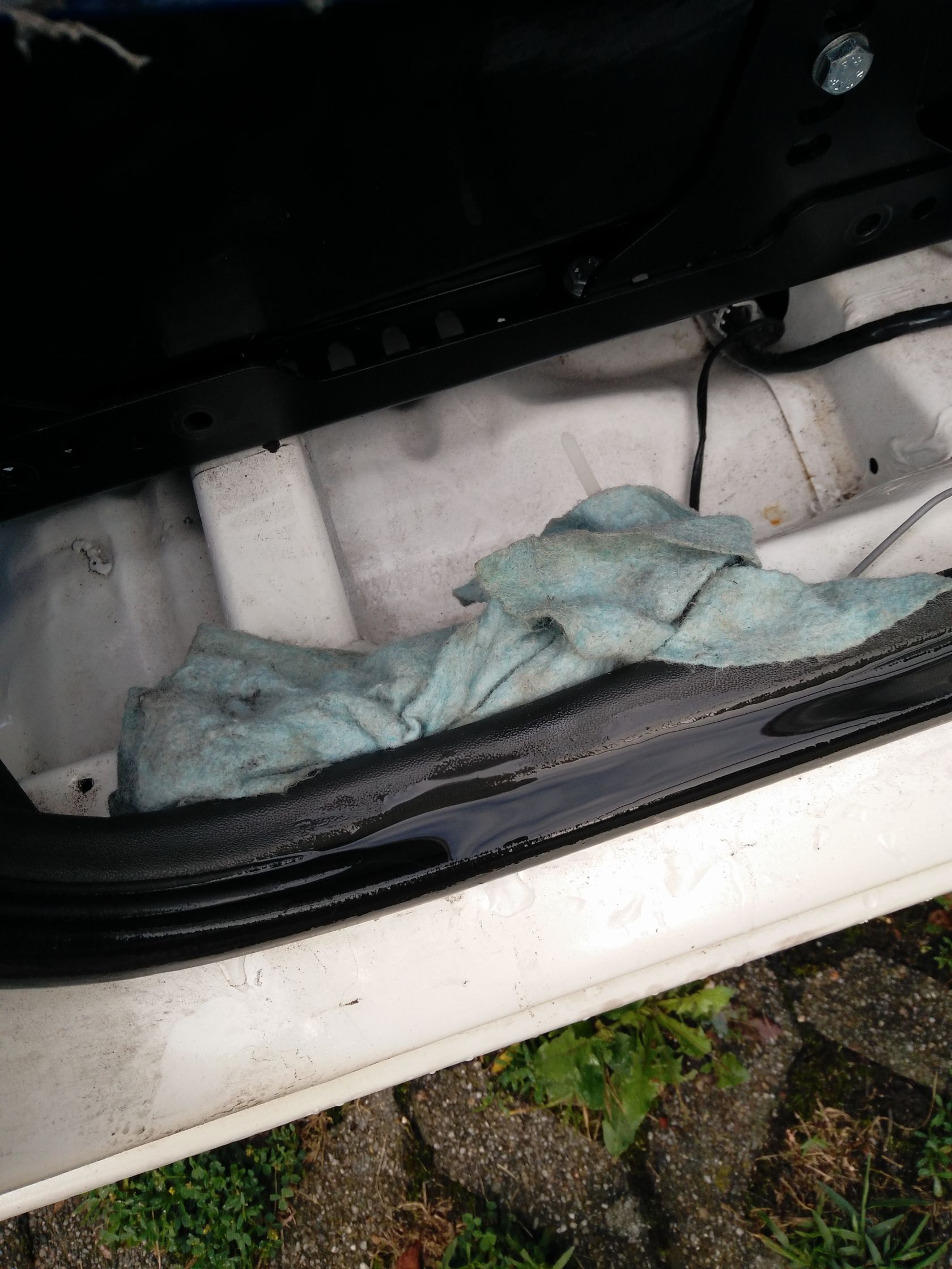 Ich habe schon ein Lappen druntergespannt, dass das Wasser eigentlich nicht in den Innenraum kommen kann.