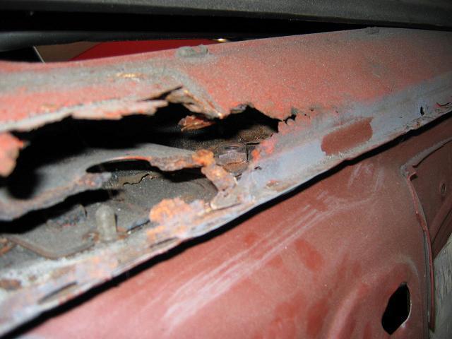 Bei meinem C-Coupe liegen im hinteren Bereich des Schwellers augenscheilich drei Bleche übereinander. Der eigentliche Außenschweller, ein weiteres Bleche und dann ein Blech, was in das Bodenblech übergeht. Leider sind bei mir alle drei Bleche nicht mehr vollständig vorhanden.