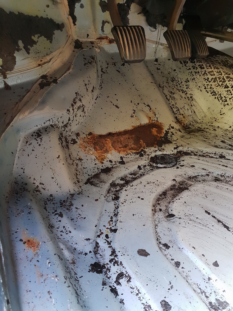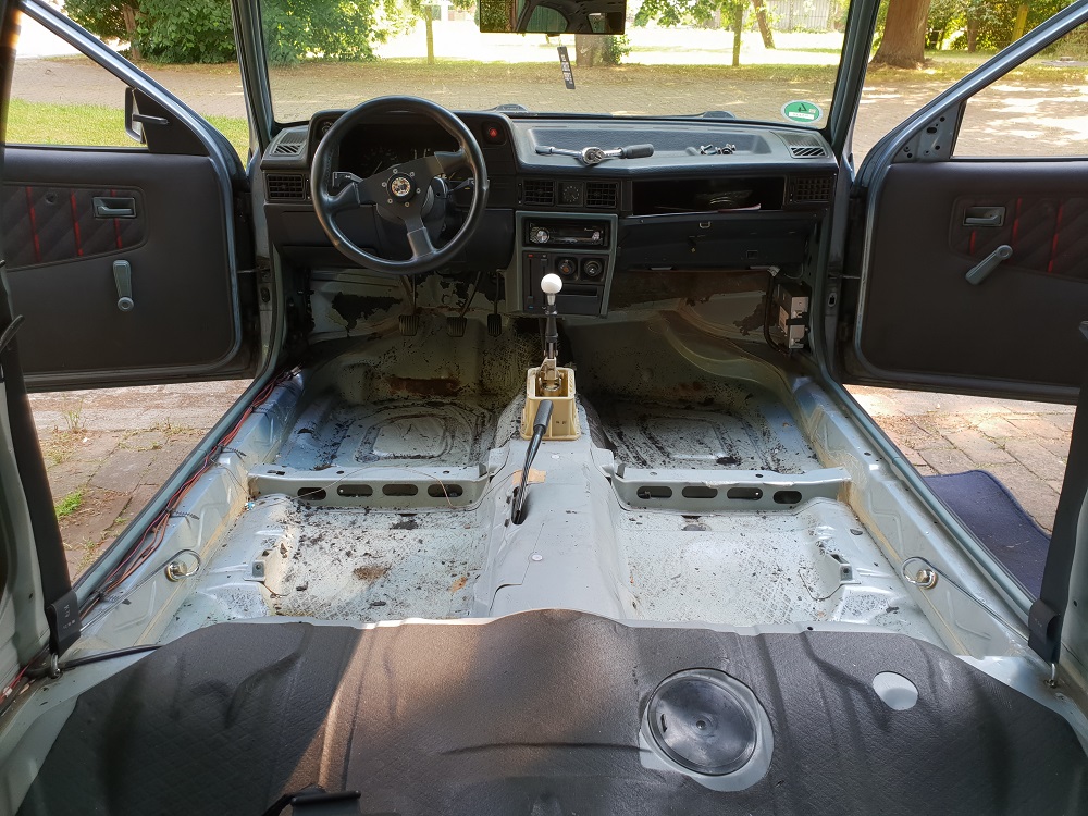 Und wie man auf den Bildern über mir eventuell schon erahnt habe ich mich auch damit beschäftigt einen Großteil der Teermatten mittels Trockeneis aus dem KFZ zu verbannen. Leider hatte ich nur genug für die Fußräume. Ich bin aber auf erfreulich wenig Rost gestoßen
