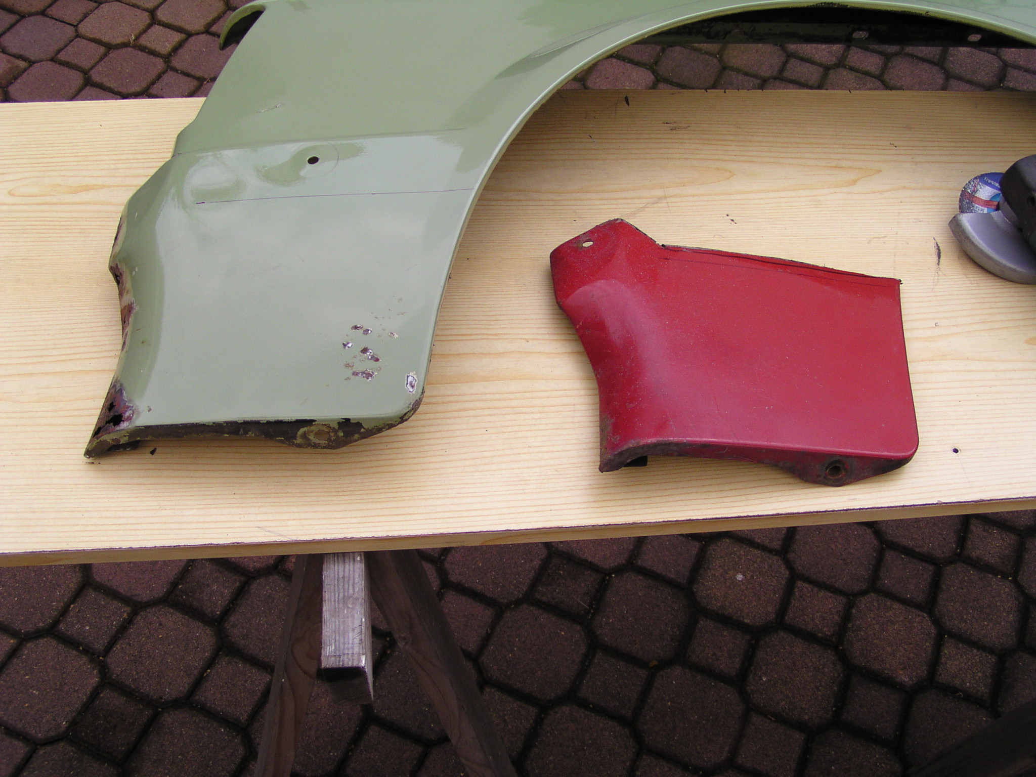 Anschließend den Falz von aussen mit Karosseridichtmasse (auf Acrylbasis) abgedichtet. Danach mit Decklack lackiert.