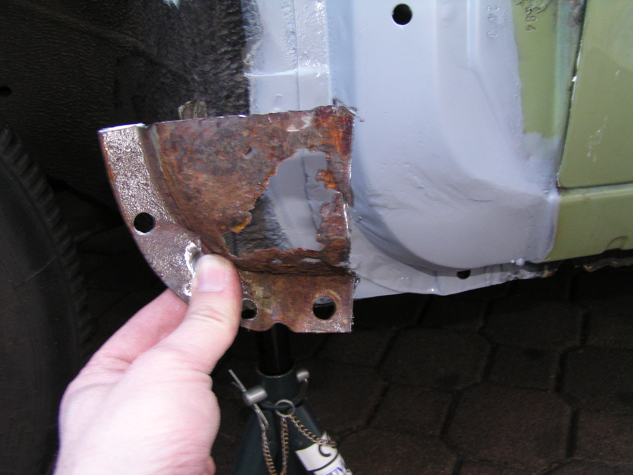 Konservierung: aussen Rostprimer aus der Dose. Innen: A-Säulenverkleidung (vor dem Schweissen) entfernt und dann von innen mit Rostschutzfarbe gestrichen (bis sie aus dem Falz heraustropft).