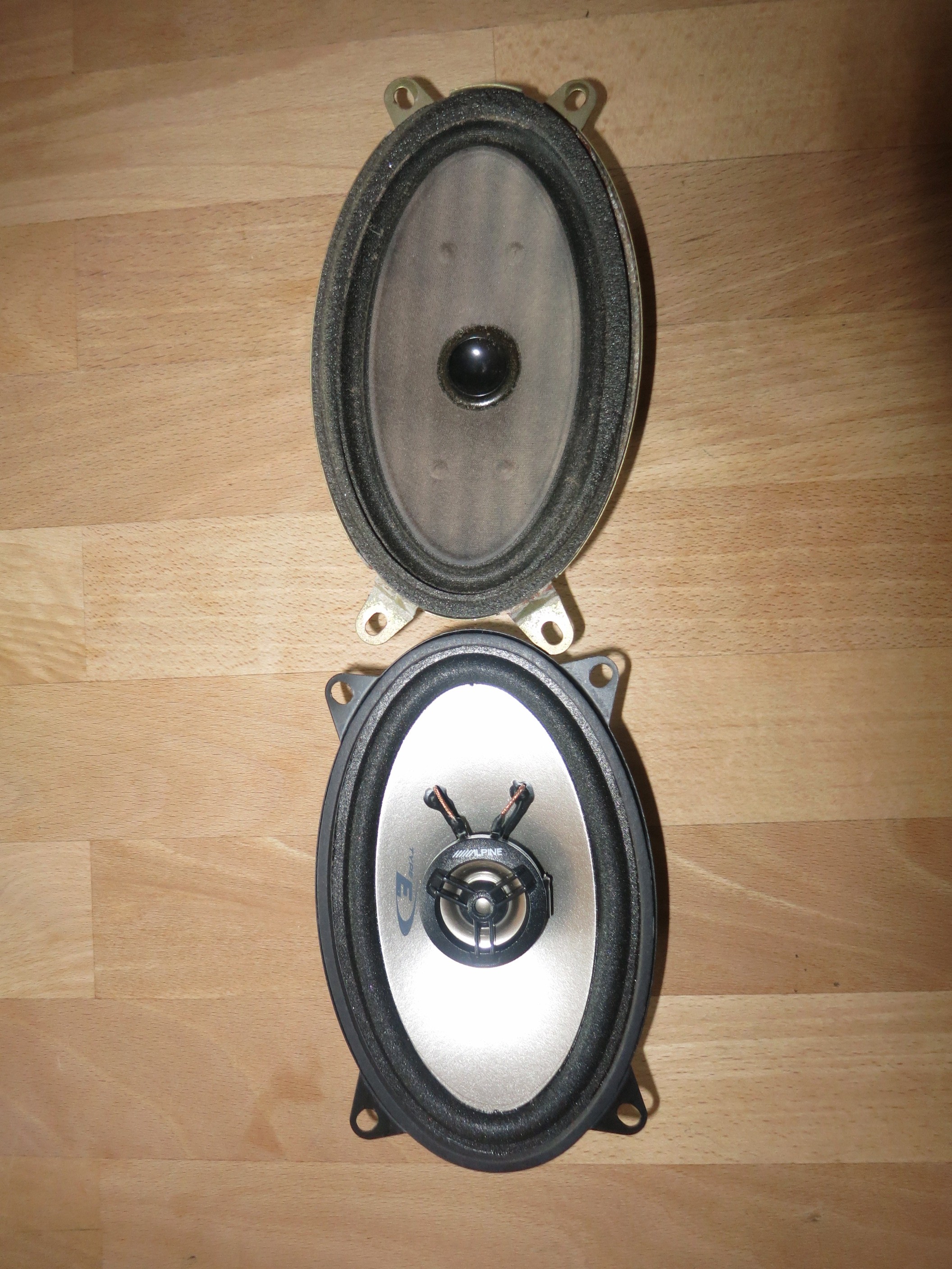 Du hast 2 Eingänge, auf dem Bild im Link mit Nummer 1, die musst du mit 2 Lautsprecherausgängen von deinem Radio verbinden. Achte darauf das du entweder die 2 vorderen oder die 2 hinteren nimmst.